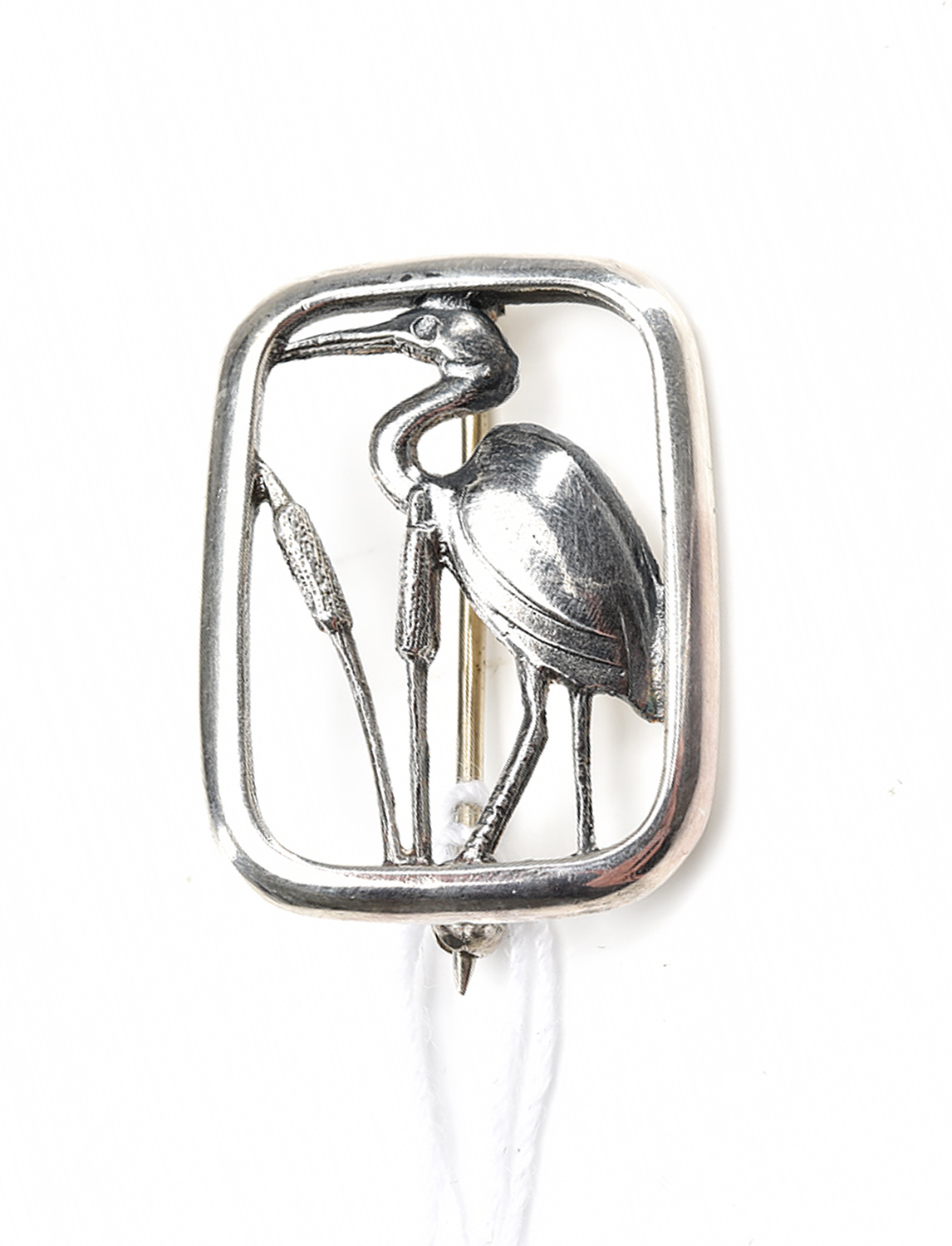 A HANDCRAFTED BROOCH BY TONY KEAN FEATURING A HERON, IN STERLING SILVER, TOTAL LENGTH 25MM, WITH MAKER'S MARK AND ORIGINAL BOX