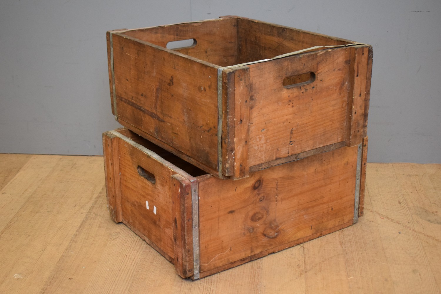 TWO RUSTIC STORAGE CRATES (27H X 60W X 46D CM)