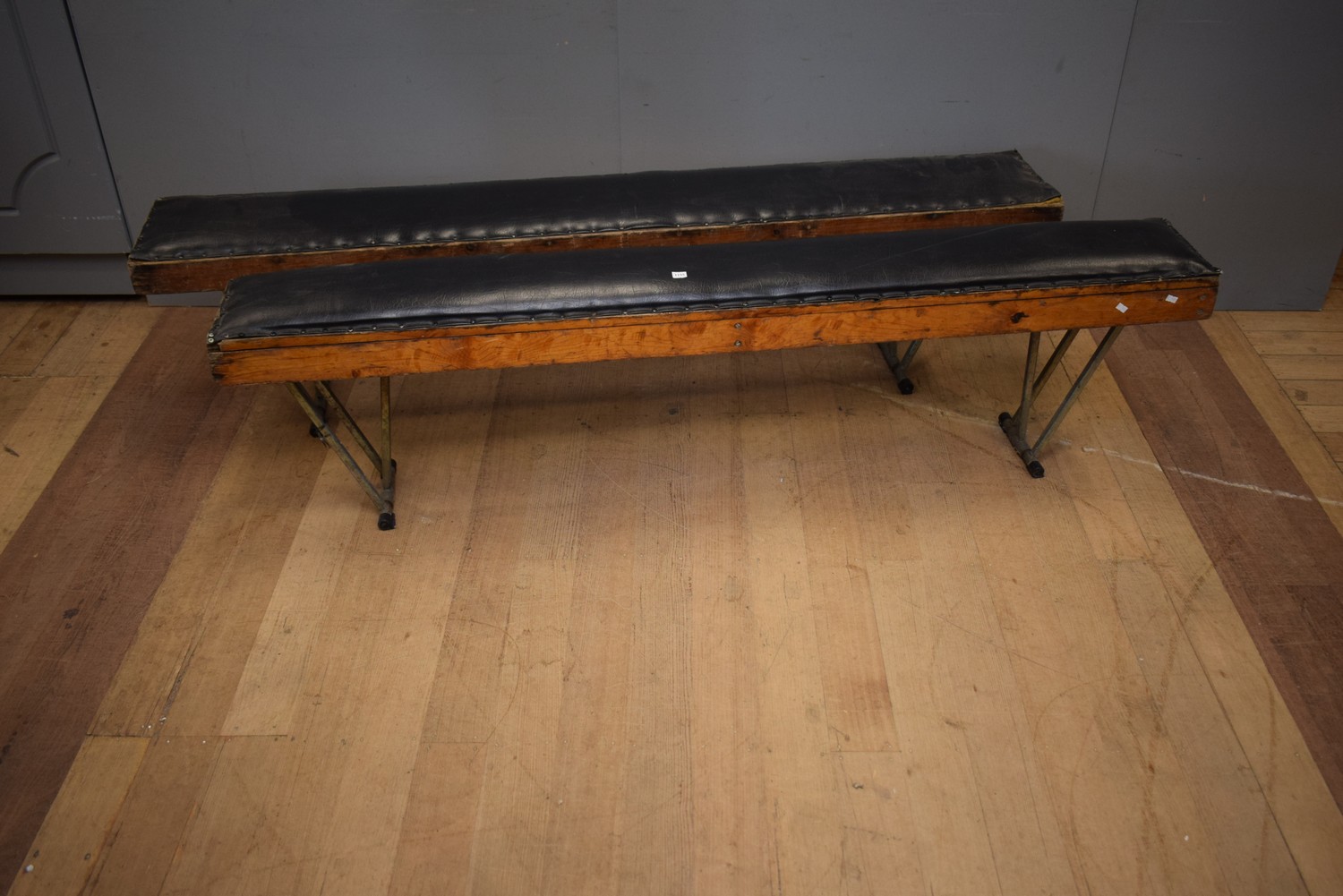 TWO VINYL UPHOLSTERED BENCHES (THE LARGER 45H X 184W X 28D CM)
