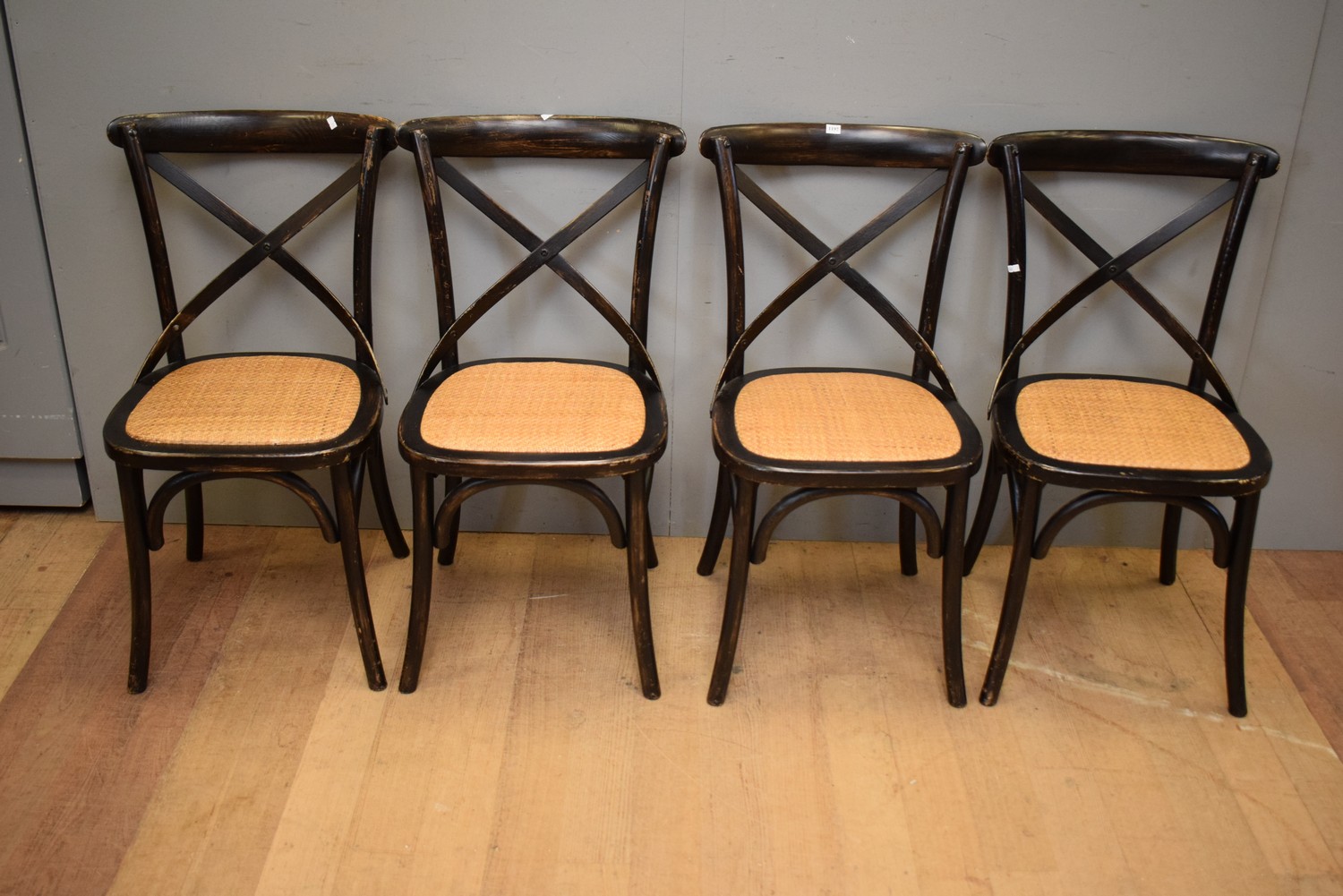 A SET OF FOUR CROSS BACK BENTWOOD CHAIRS (88 CM H)