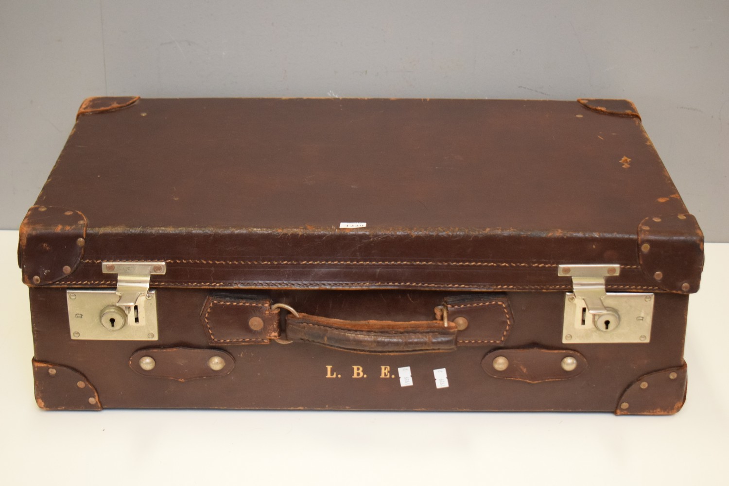 A 1900S LEATHER SUITCASE IN ORIGINAL CONDITION (21H X 68W X 41D CM)