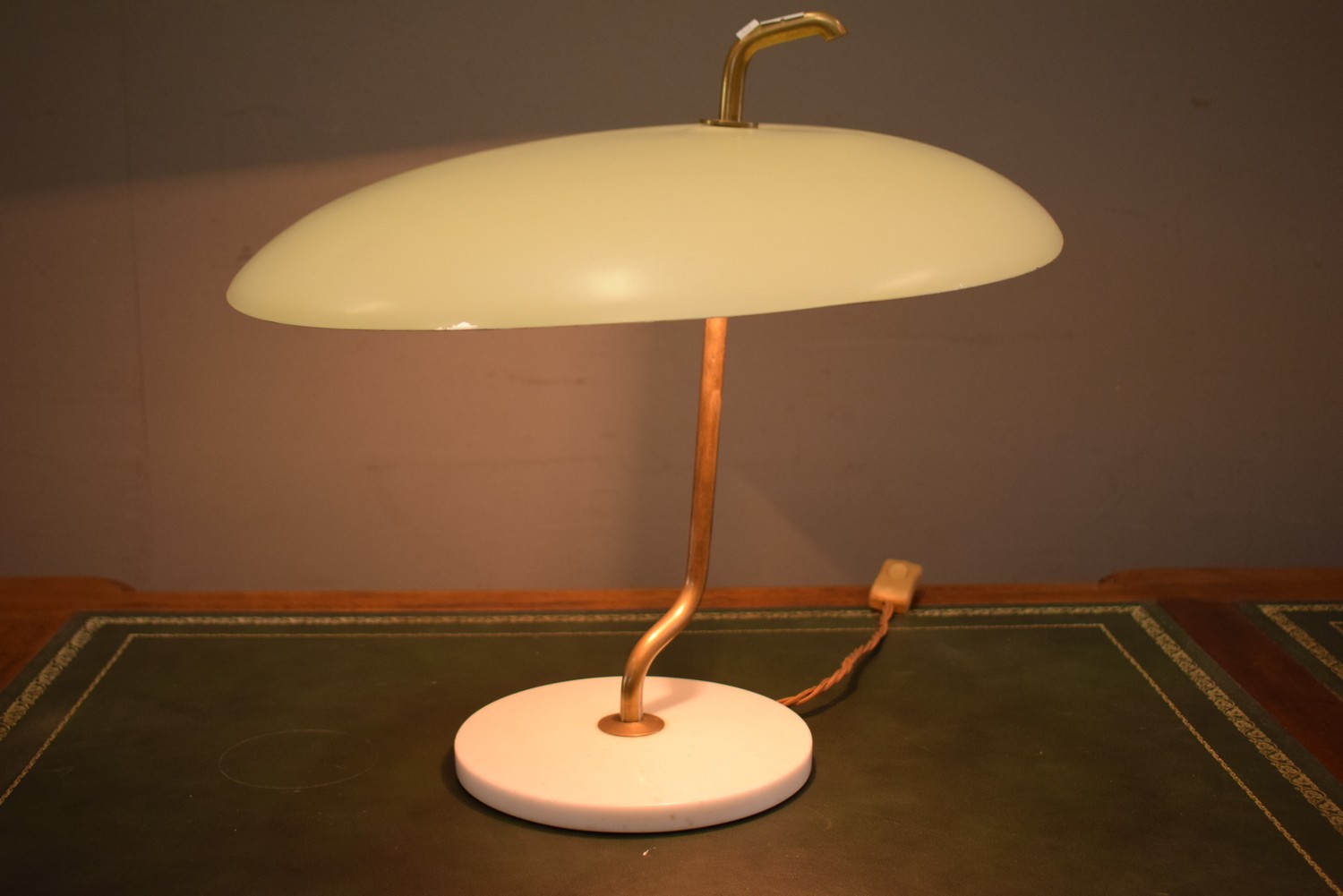 AN ORIGINAL 1960s MILANO ARTELUCE MARBLE, BRASS AND METAL DESK LAMP (37H X 44W CM)