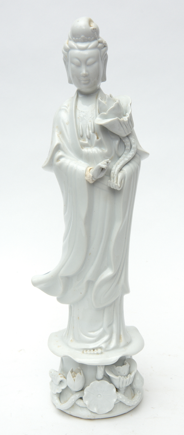A CHINESE BLANC DE CHINE GUAN YIN FIGURE WITH REMOVABLE HAND H.41CM
