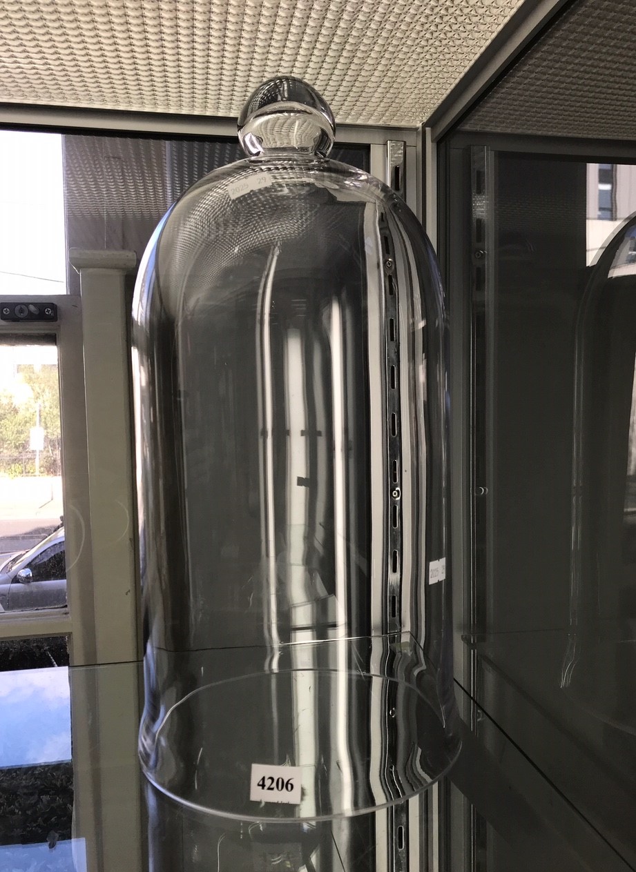 GLASS FOOD CLOCHE WITH MOULDED GLASS FINIAL H.38CM MINOR LOSSES TO RIM