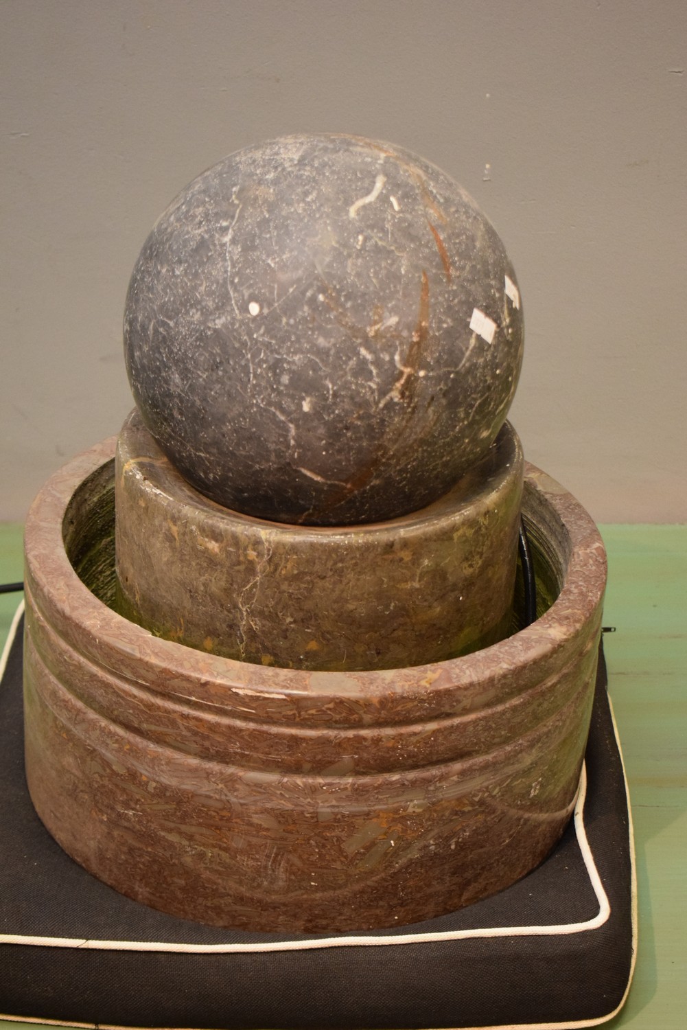 A DECORATIVE STONE FOUNTAIN IN THREE PARTS (PLEASE NOTE THIS ITEM MUST BE REMOVED BY CLIENTS OR CARRIERS AT THE CUSTOMERS EXPENSE) (47 CM H)