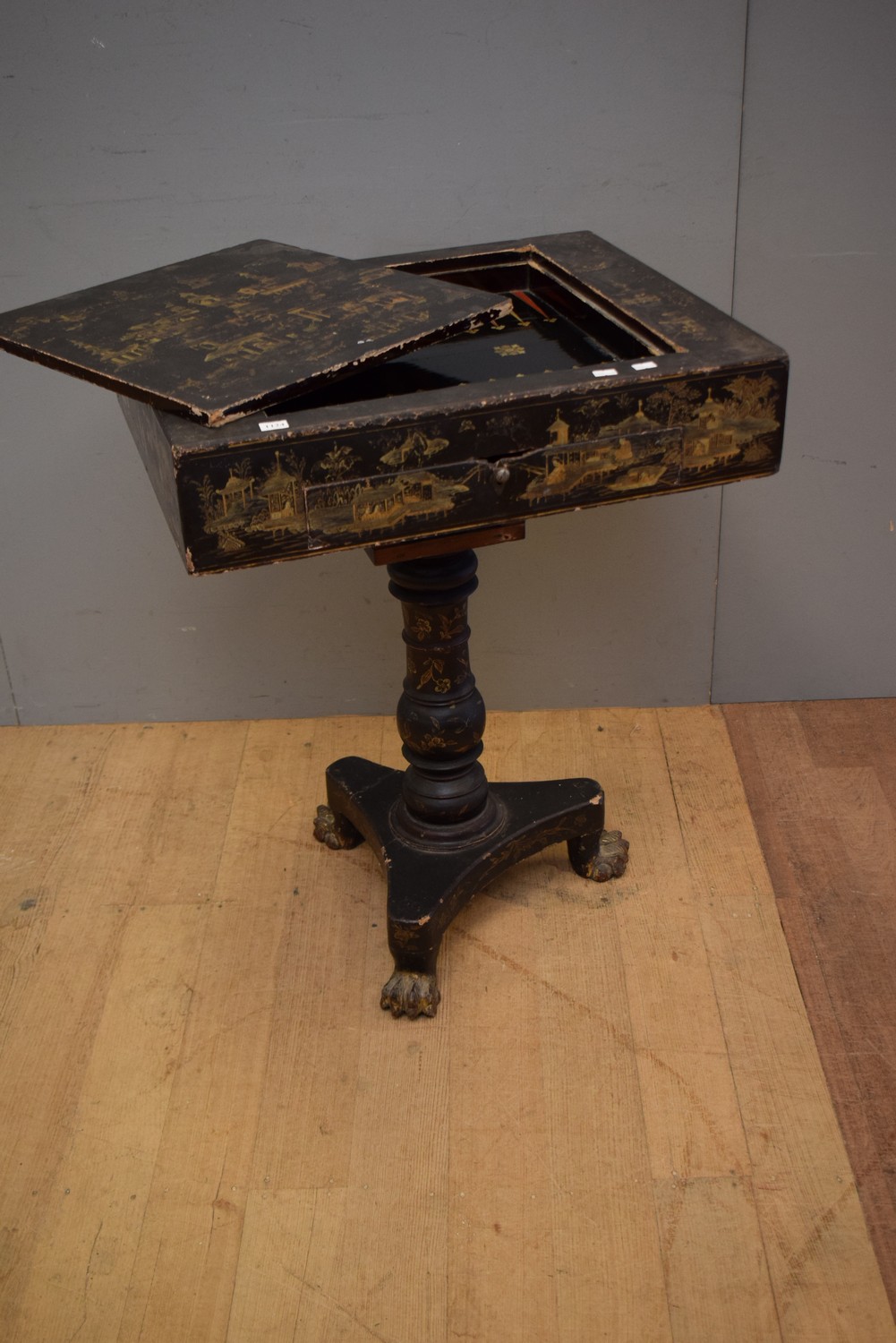 A CHINOISERIE STYLE DECORATIVE GAMES TABLE (A/F) (79H X 61W X 51D CM)
