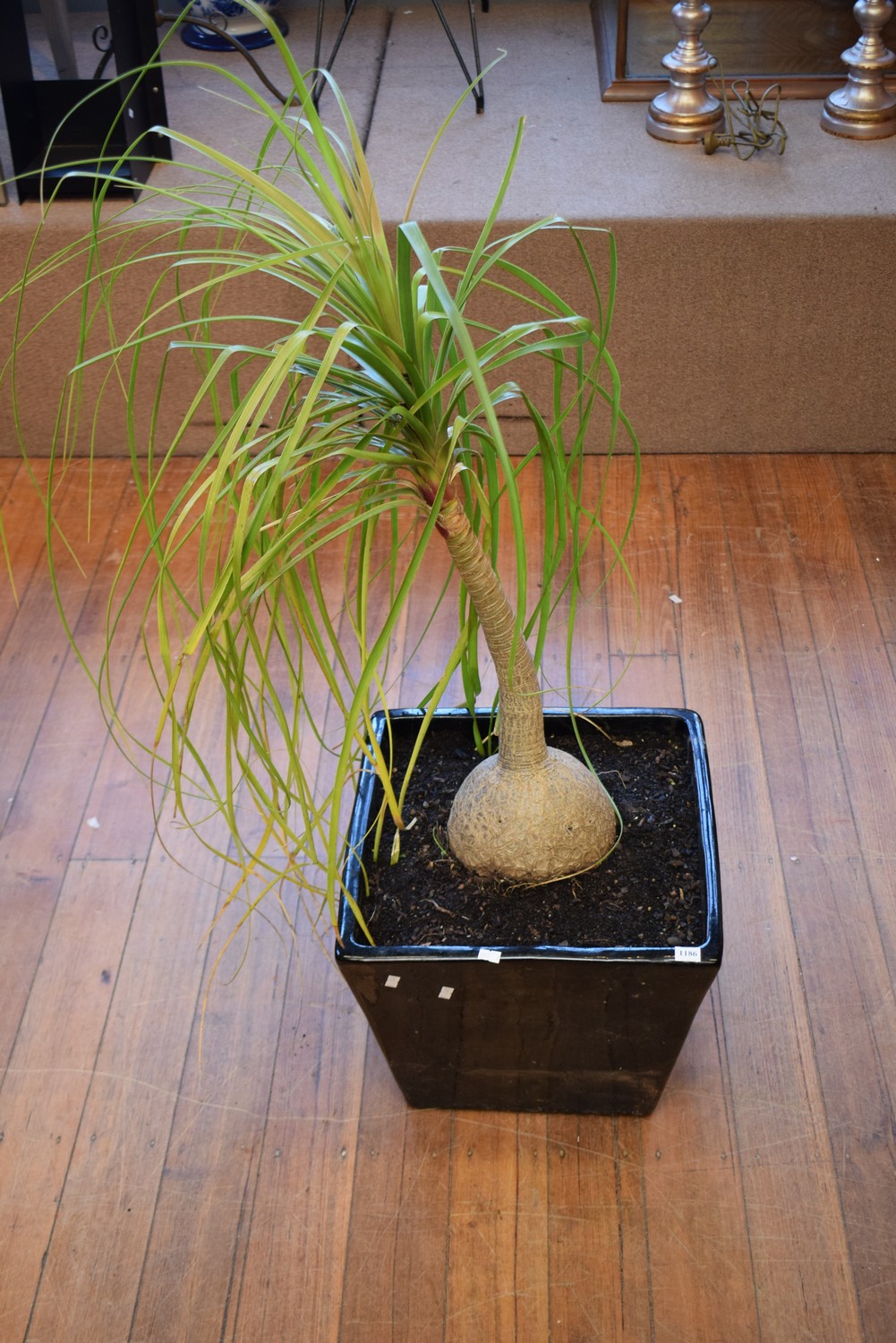 AN ESTABLISHED PONYTAIL IN A GLAZED POT