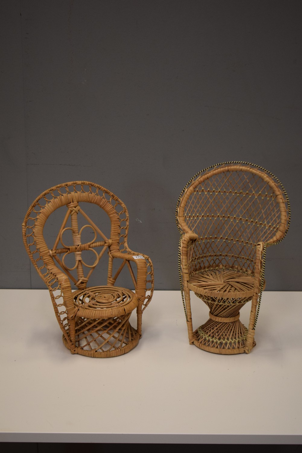 TWO MINIATURE PEACOCK CHAIRS (41 CM H)
