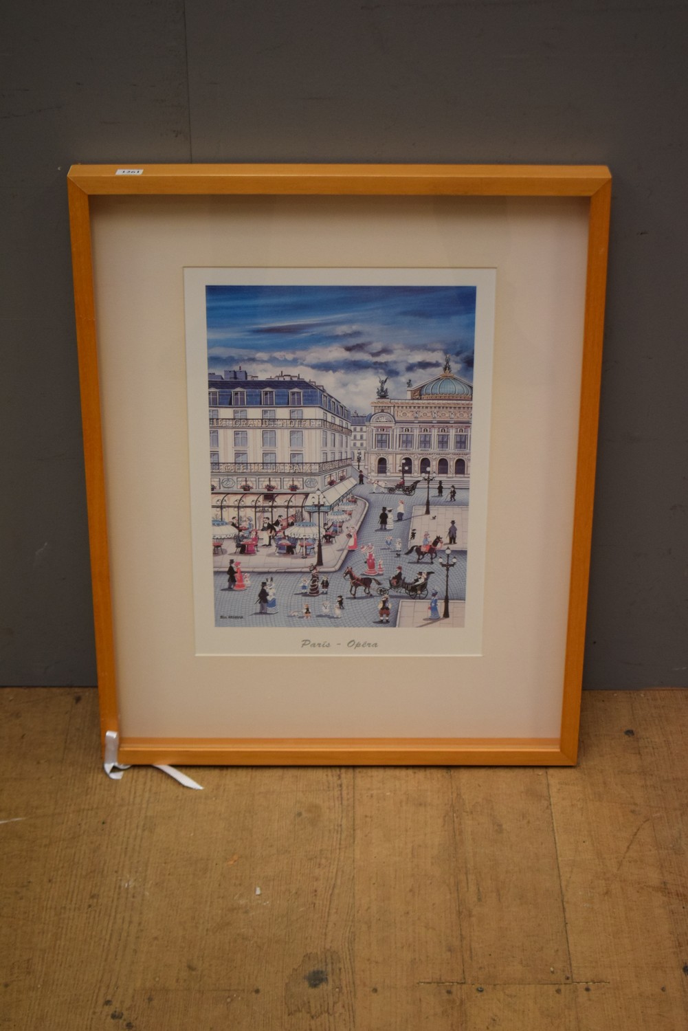A LIMITED EDITION PRINT OF PARIS BY JAPANESE ARTIST BIN KISHIWA IN A TEAK FRAME (67H X 52W CM)