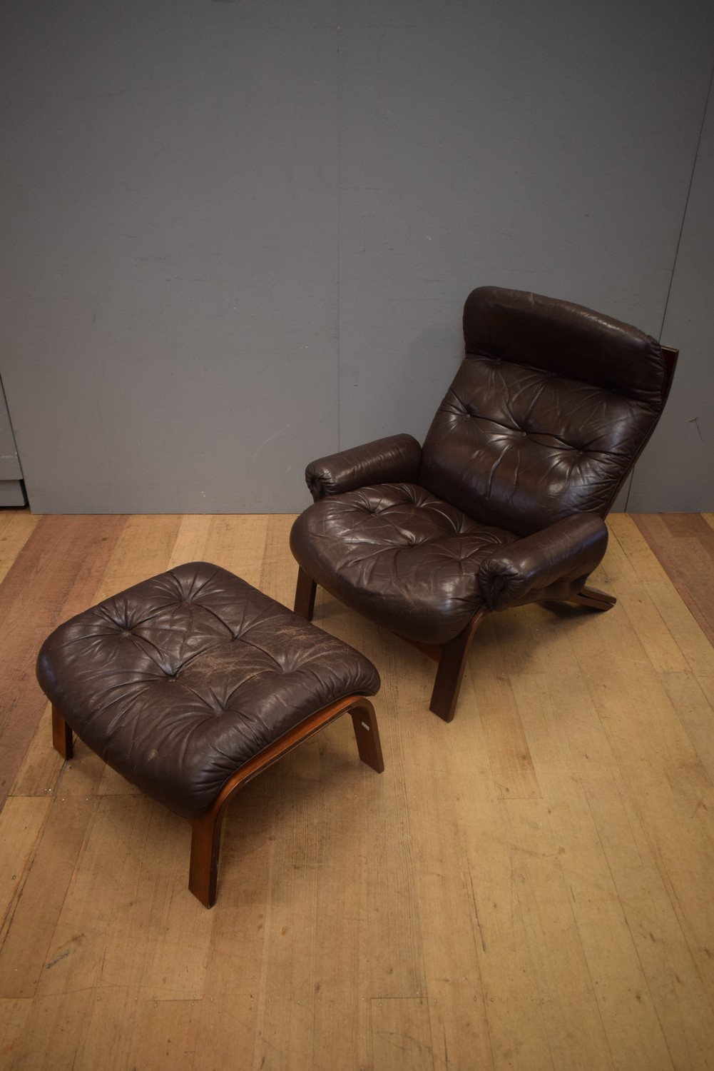 A 1960'S DANISH LEATHER CHAIR AND OTTOMAN (CHAIR 94H X 85W X 93D CM)