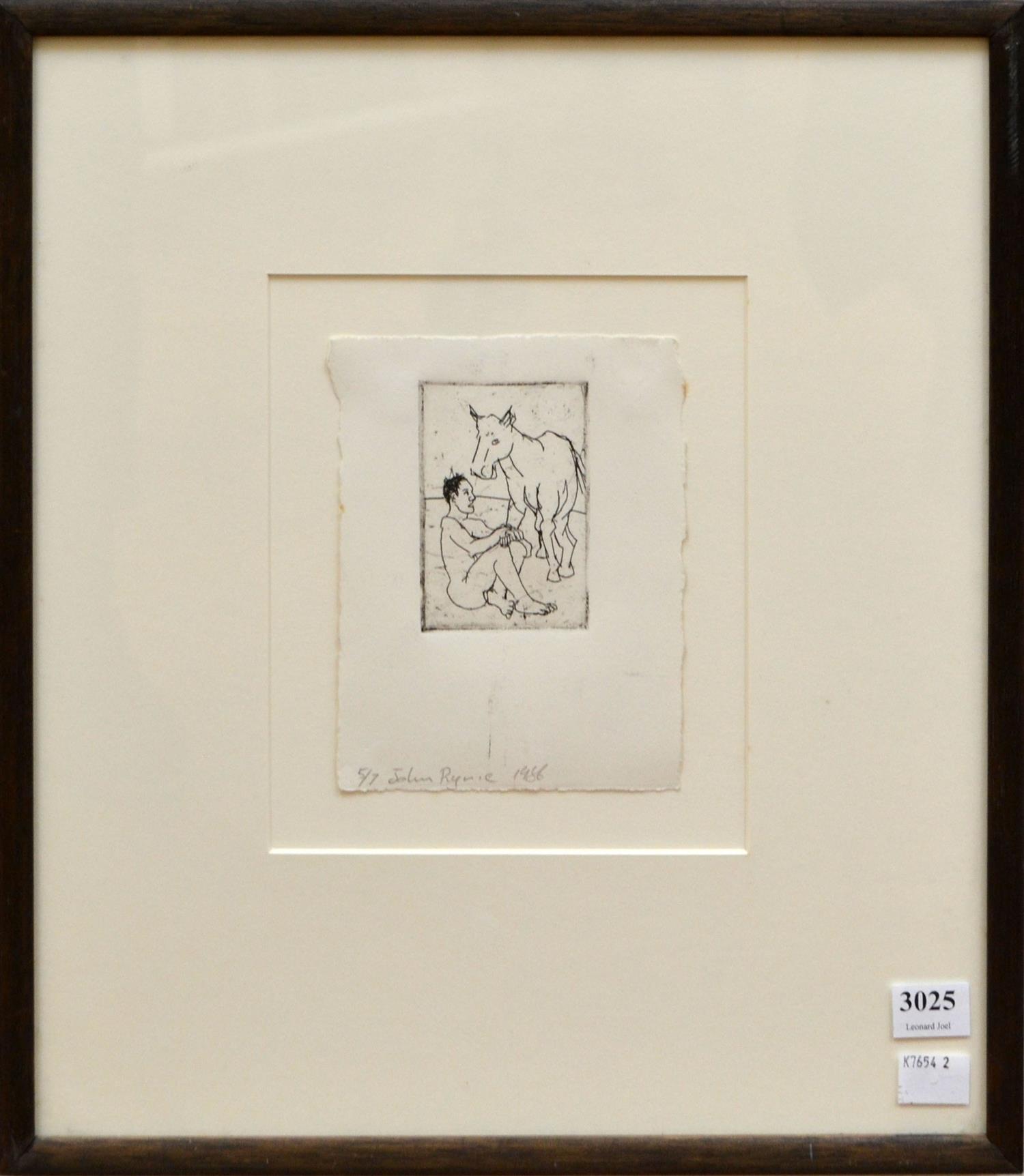 JOHN RYRIE, UNTITLED 1986, ETCHING 5/7, 8 X 5.5CM, FRAME: 37.5 X 33CM, CONDITION: HANDLING CREASES, WELL FRAMED