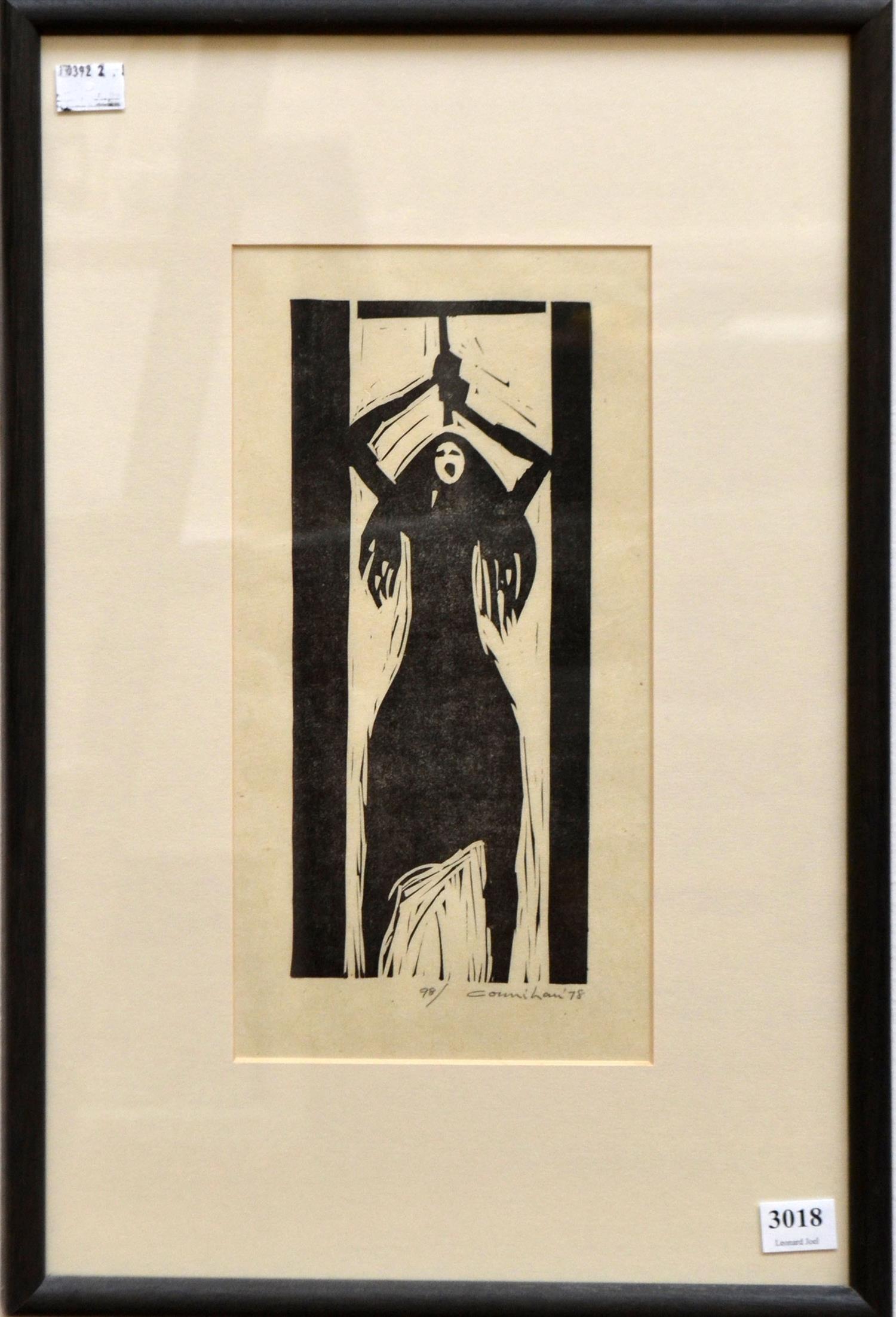 NOEL COUNIHAN, DEMONSTRATOR 1978, LINOCUT 98/100, 23.5 X 10CM, 45 X 30CM (FRAME SIZE),