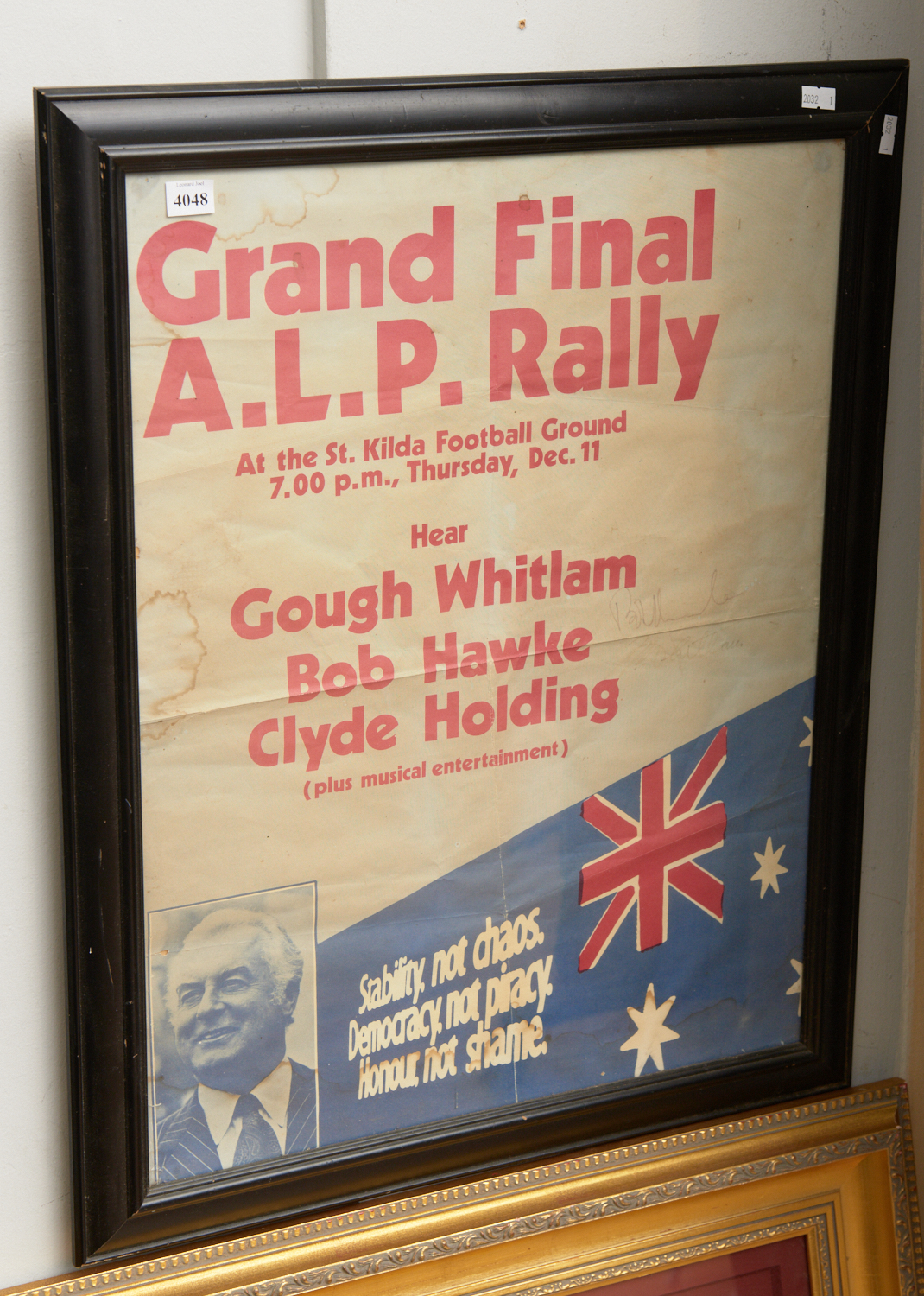 GRAND FINAL ALP RALLY POSTER, SIGNED BY BOB HAWKE
