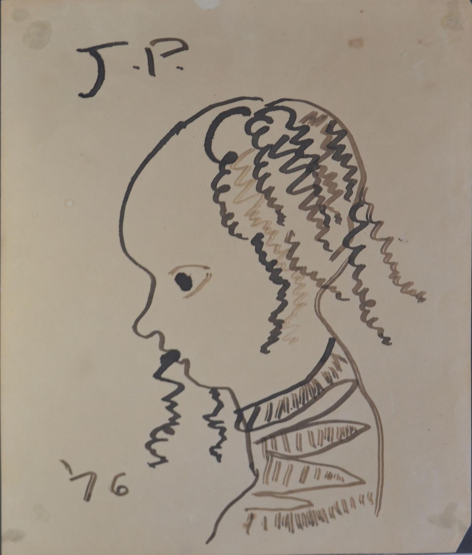 JOHN PERCEVAL, FIGURE 1976, INK ON PAPER, 26 X 20CM, UNFRAMED, CONDITION: FOXING, DISCOLOURATION, PEN MARKS TO CORNERS AND LIGHT TEARING TO EDGES OF PAPER