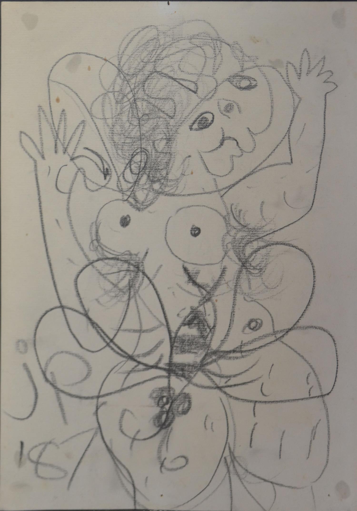 JOHN PERCEVAL, LOOKING BACKWARDS, PENCIL ON PAPER 1987, 30 X 21CM, UNFRAMED, CONDITION: FOXING, DISCOLOURATION, PEN MARKS TO CORNERS AND LIGHT TEARING TO EDGES OF PAPER