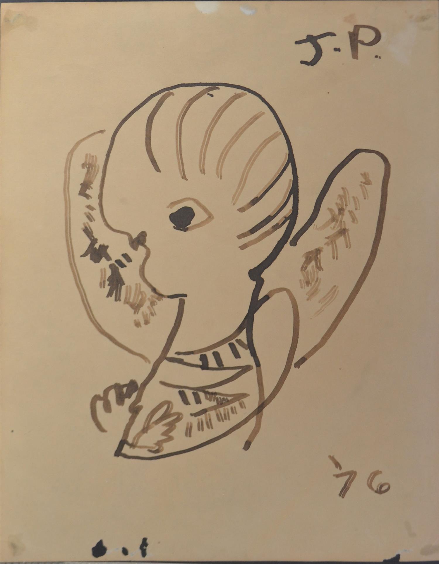JOHN PERCEVAL, UNTITLED 1976, INK ON PAPER, 26 X 21CM, UNFRAMED, CONDITION: FOXING, DISCOLOURATION, PEN MARKS TO CORNERS AND LIGHT TEARING TO EDGES OF PAPER, HOLES TO PAPER
