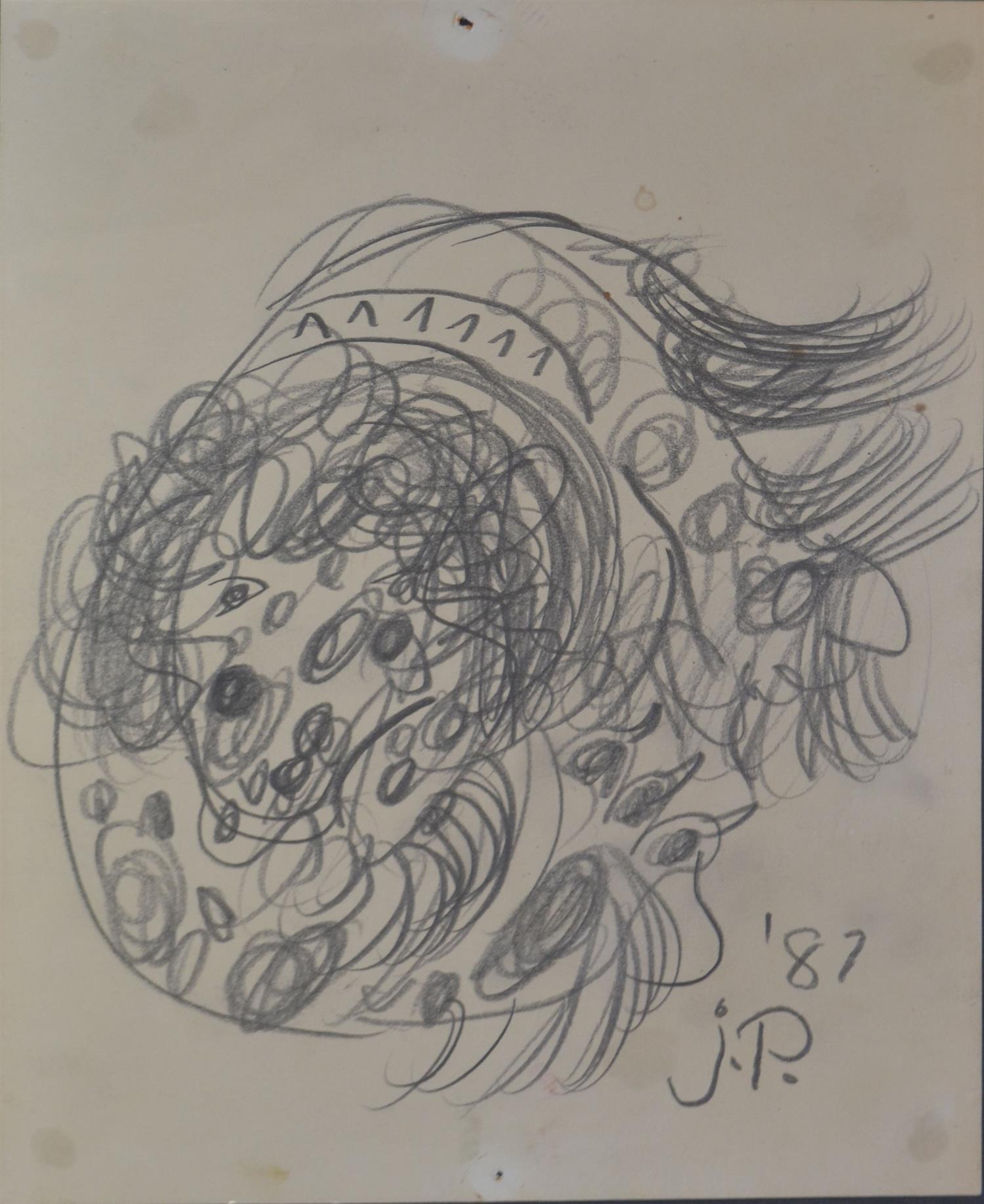 JOHN PERCEVAL, PLAYING CAT 1987, PENCIL ON PAPER, 23 X 17CM, UNFRAMED, CONDITION: FOXING, DISCOLOURATION, PEN MARKS TO CORNERS AND LIGHT TEARING TO EDGES OF PAPER