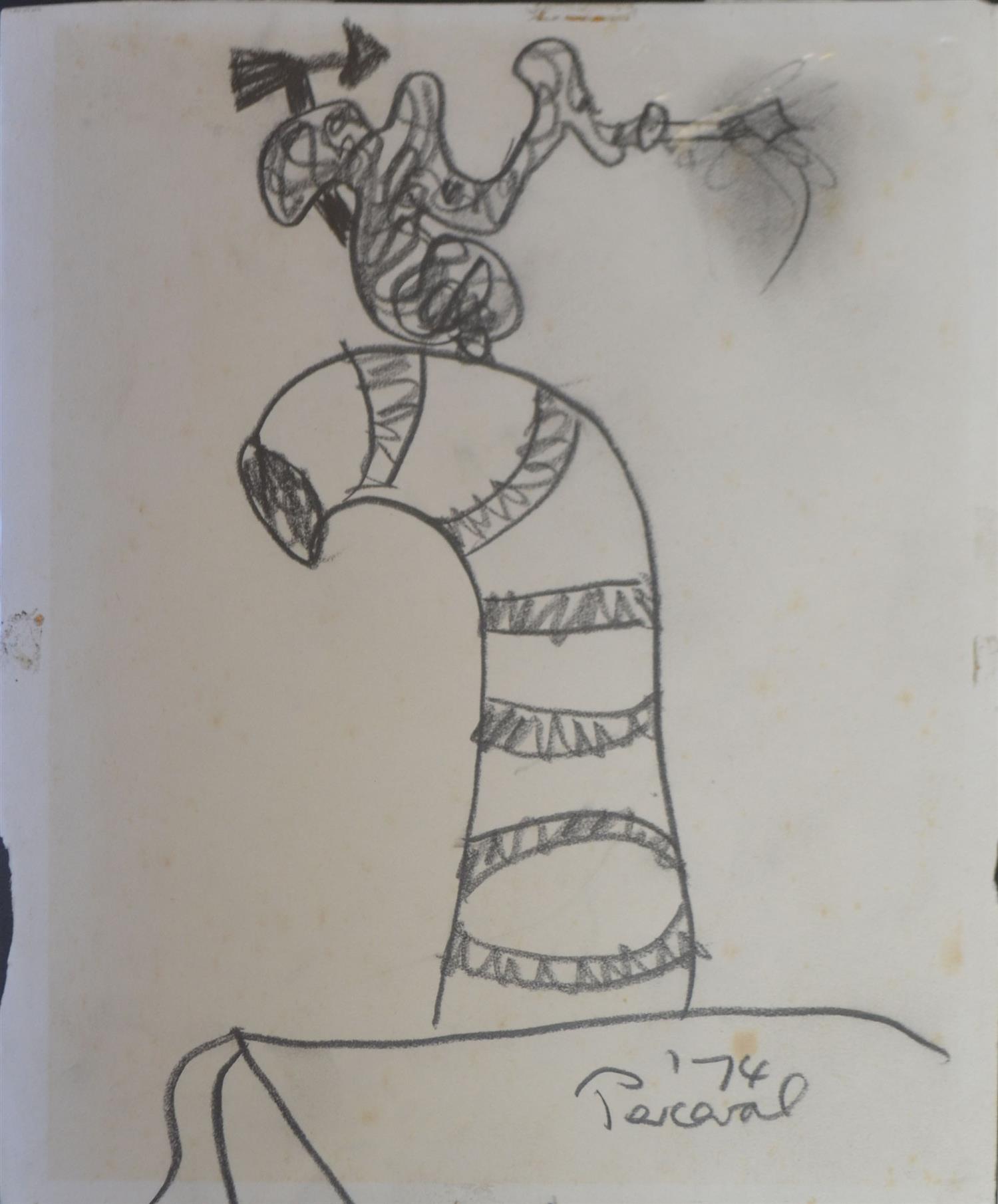 JOHN PERCEVAL, UNTITLED 1974, PENCIL ON PAPER, 34 X 27CM, UNFRAMED, CONDITION: FOXING, DISCOLOURATION, PEN MARKS TO CORNERS AND PAPER LOSS LOWER LEFT APPROX 5CM