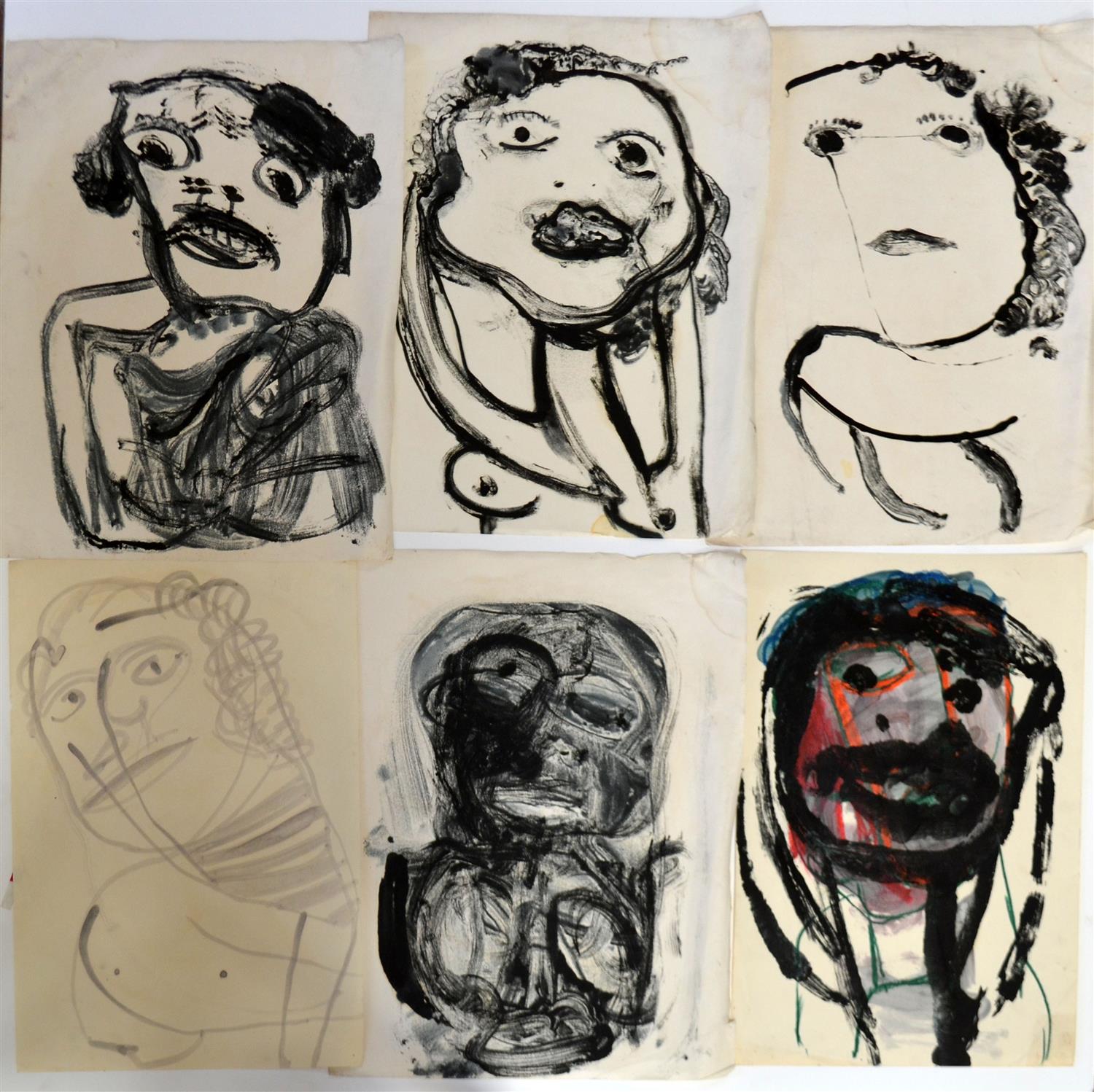 ANNE HALL, COLLECTION OF SIX ABSTRACT PORTRAITS, MONOPRINTS, SIZES VARY, LARGEST WORK: 59 X 45CM,