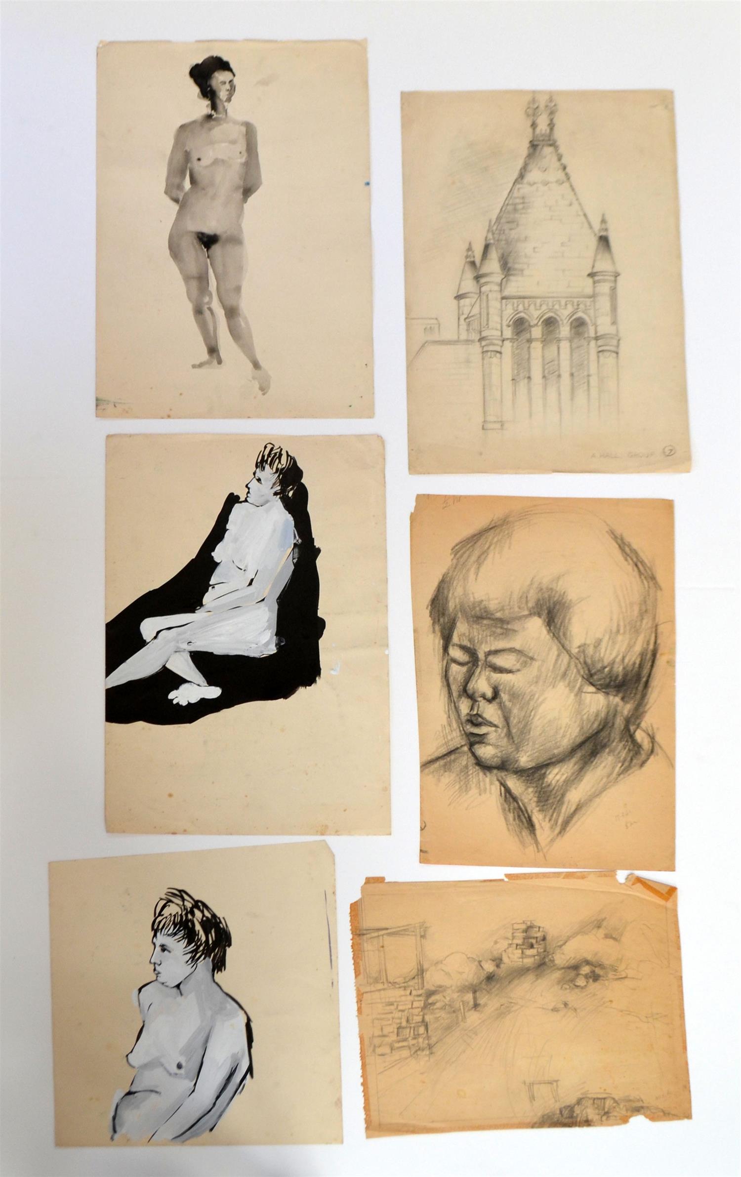 ANNE HALL, SIX ASSORTED SKETCHES, NUDE AND LANDSCAPES, PENCIL ON PAPER, GOUACHE AND INK ON PAPER, SIZES VARY, LARGEST: 60 X 40CM,