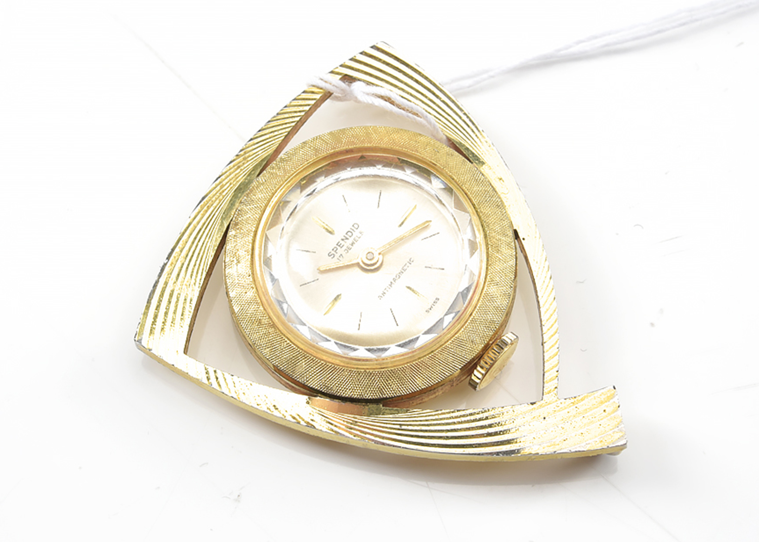 A RETRO 'SPLENDID' MANUAL WIND WATCH PENDANT IN GILT, TOTAL LENGTH 45MM