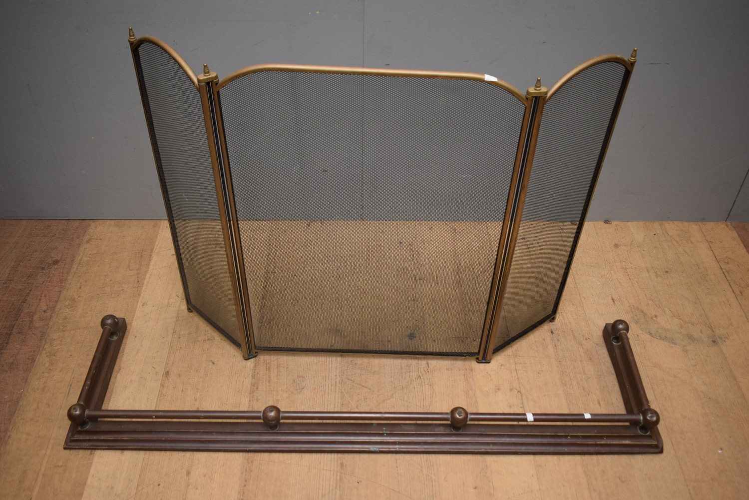 A BRASS FIRE SCREEN AND TENDER (SCREEN 82H X 107W CM) (A/F)