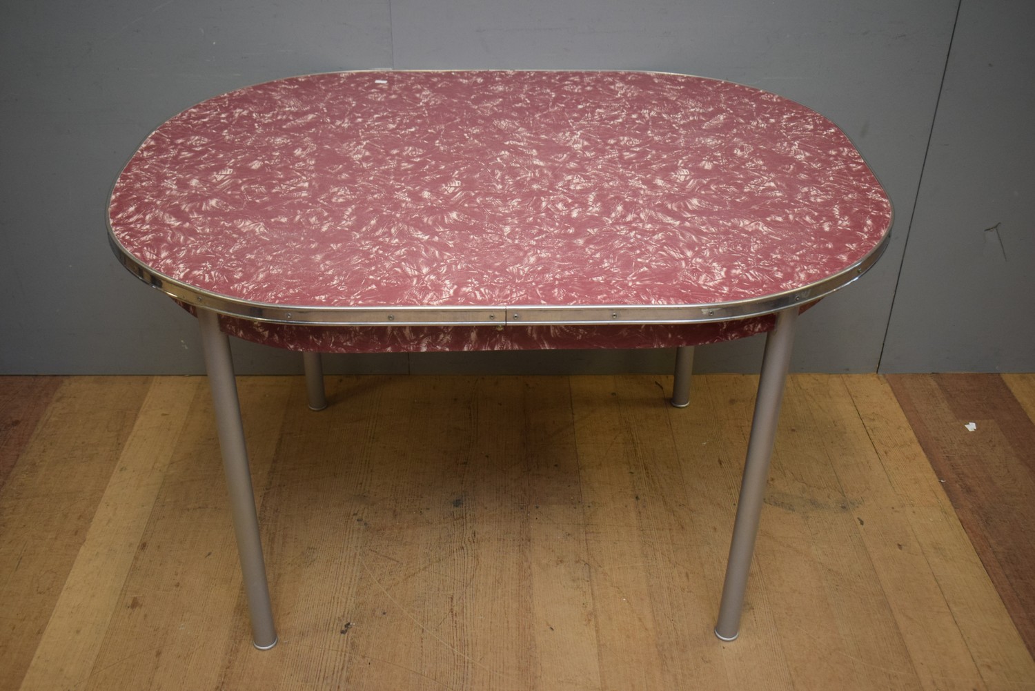 A MID-CENTURY STYLE LAMINEX TABLE (74H X 122W X 92D CM)