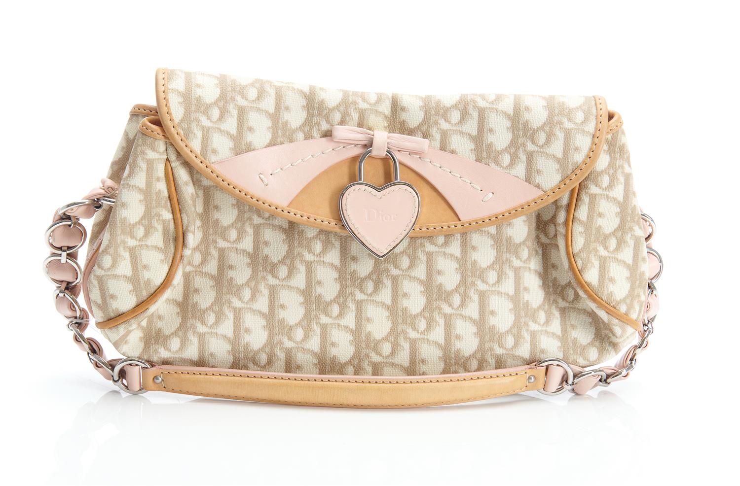 Styled in Diorissimo coated canvas with light pink and tan leather trim and silver metal hardware, 25 x 10 x 8cm.