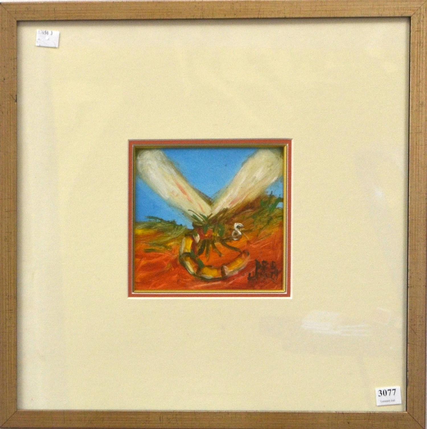 PRO HART, DRAGONFLY, OIL ON BOARD, 14 X 15CM, FRAME: 42.5 X 43.5CM, CONDITION: VERY GOOD