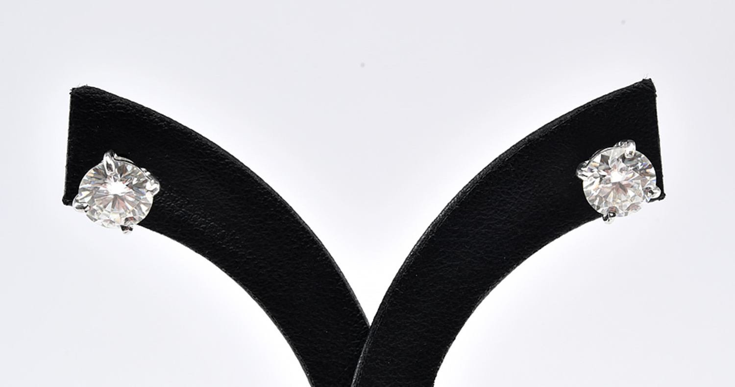 A PAIR OF MOISSANITE STUD EARRINGS TOTALLING 2.52CTS, TO POST AND BUTTERFLY FITTINGS, IN 18CT WHITE GOLD