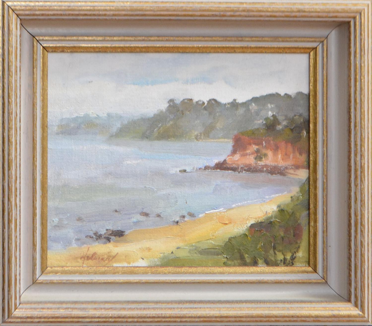 SIGNED HOLMAN, SHIRE HALL BEACH, MORNINGTON, OIL ON BOARD, 19 X 24CM, FRAME SIZE: 30 X 35CM, CONDITION: VERY GOOD, NO MAJOR FAULTS TO REPORT