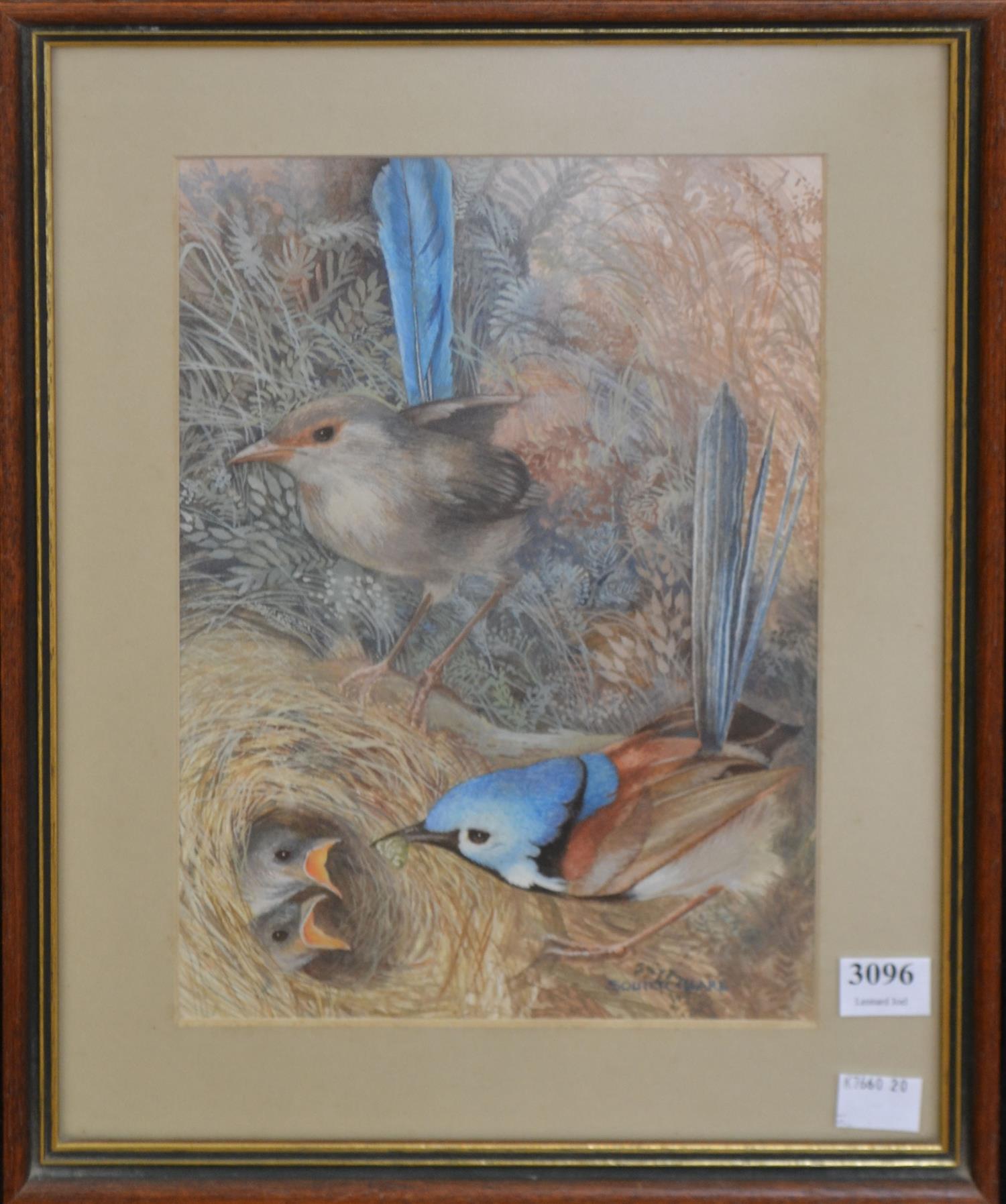 SIGNED SOUTERCIARE, BIRDS, WATERCOLOUR, 25 X 18CM, FRAME SIZE: 36 X 28CM, CONDITION: VERY GOOD