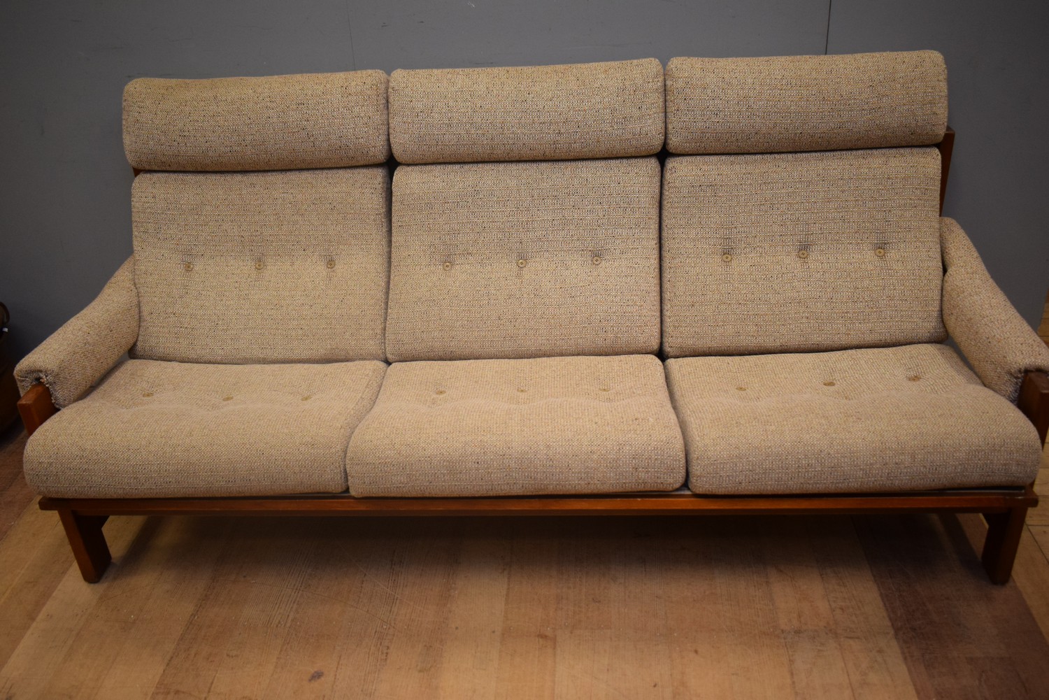A MID-CENTURY THREE SEATER SOFA (90H X 200W X 90D CM) (A/F)
