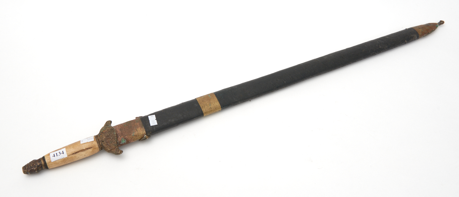 A CHINESE JIAN SWORD WITH BONE HANDLE - NOTE: AN EDGED WEAPONS LICENSE IS REQUIRED TO VIEW, PURCHASE AND COLLECT