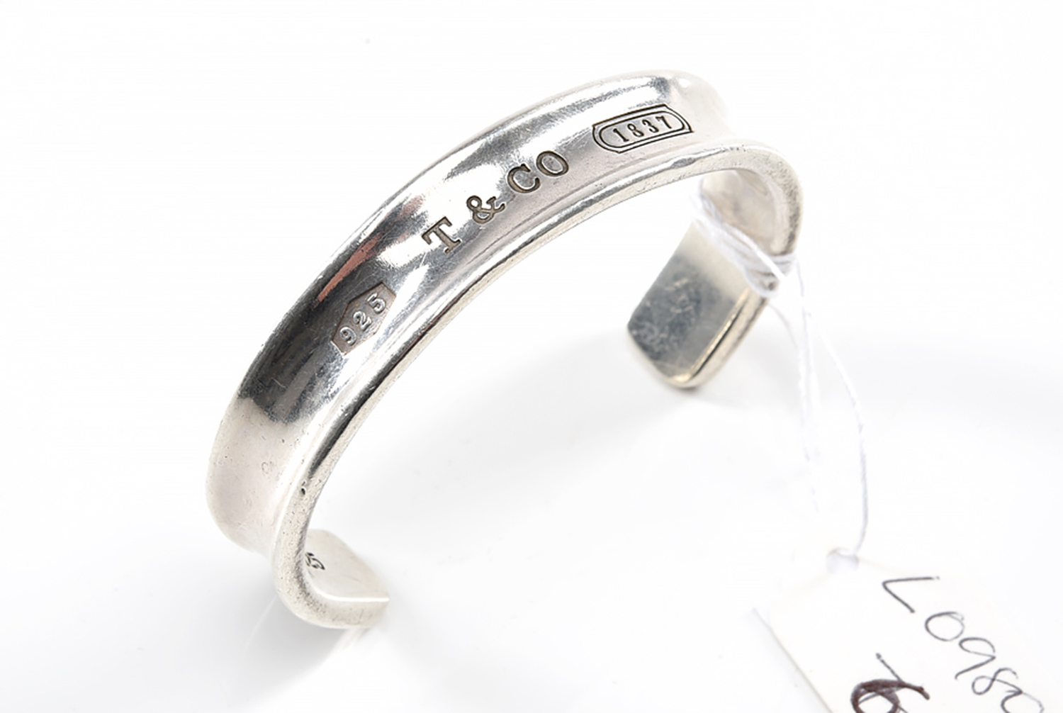 A CUFF BANGLE BY TIFFANY & CO IN STERLING SILVER, INNER DIAMETER 55MM, A/F
