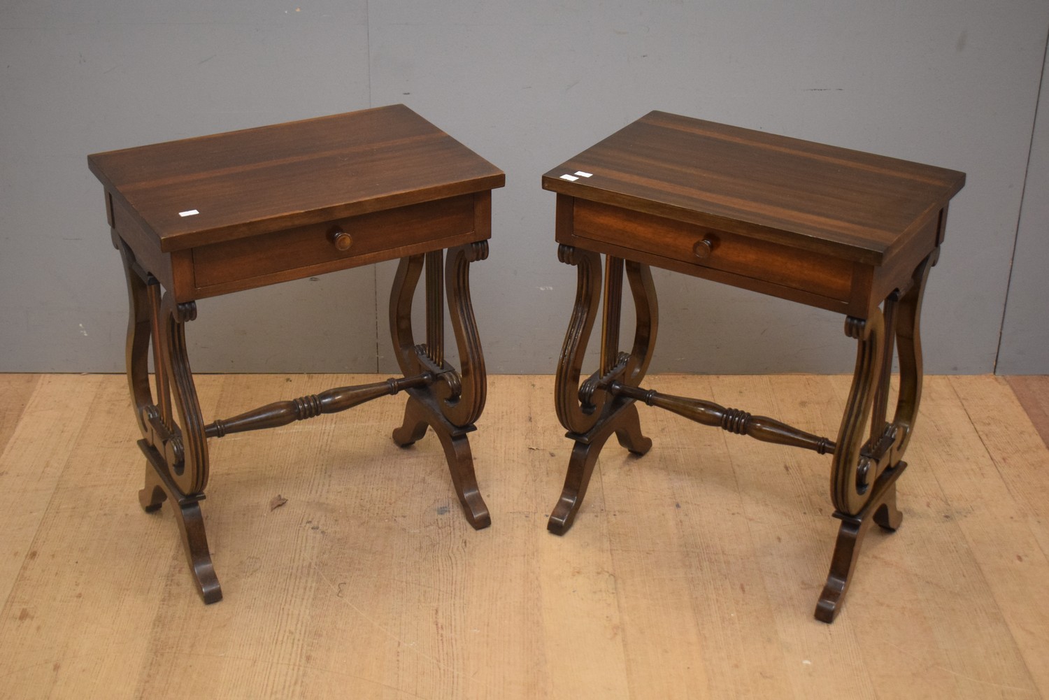 A PAIR OF SINGLE DRAWER BEDSIDE CABINETS WITH STRETCHER BASES (57H X 48W X 33D CM)