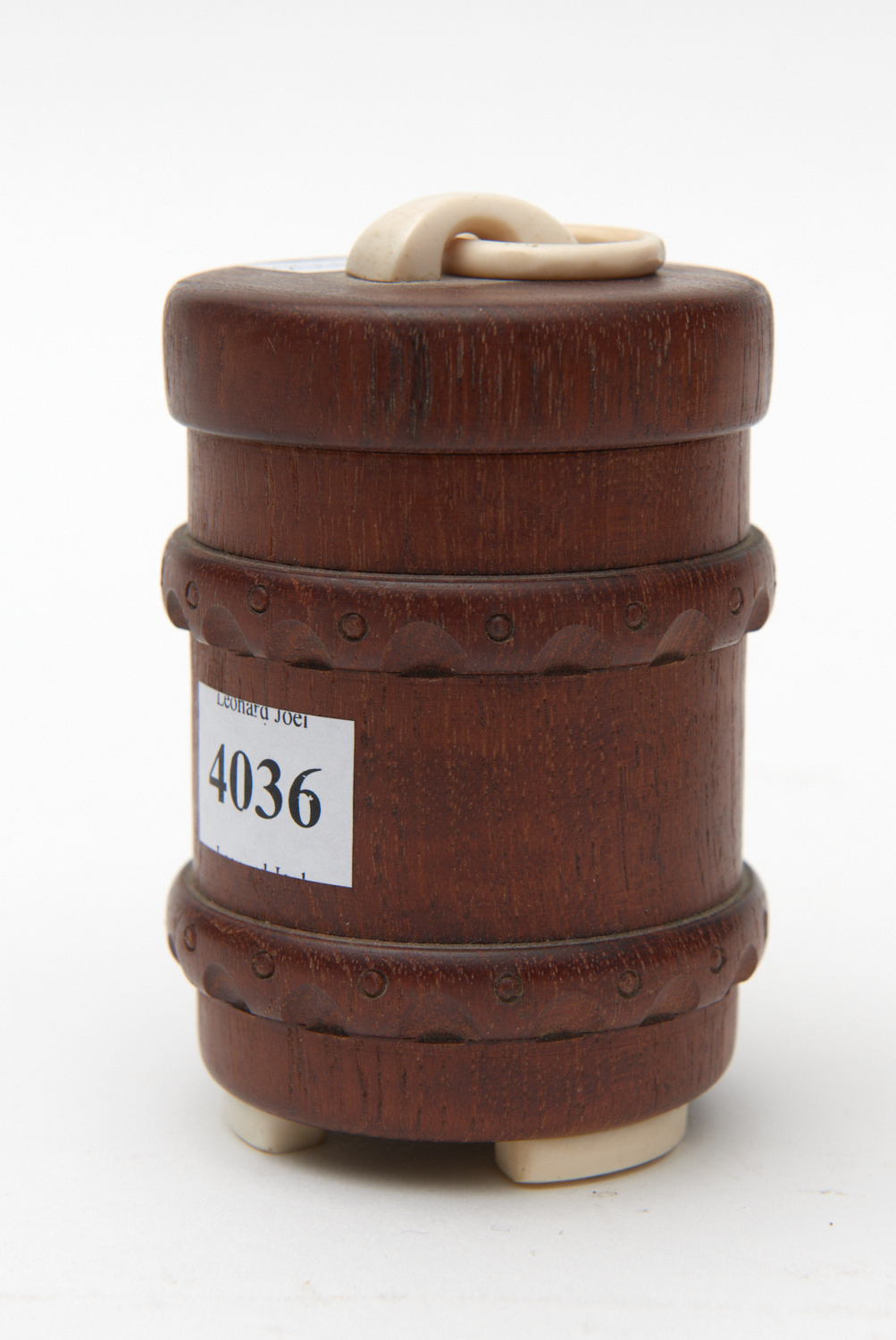 A 1920S CEDAR AND BONE LIDDED TEA CADDY H.9CM