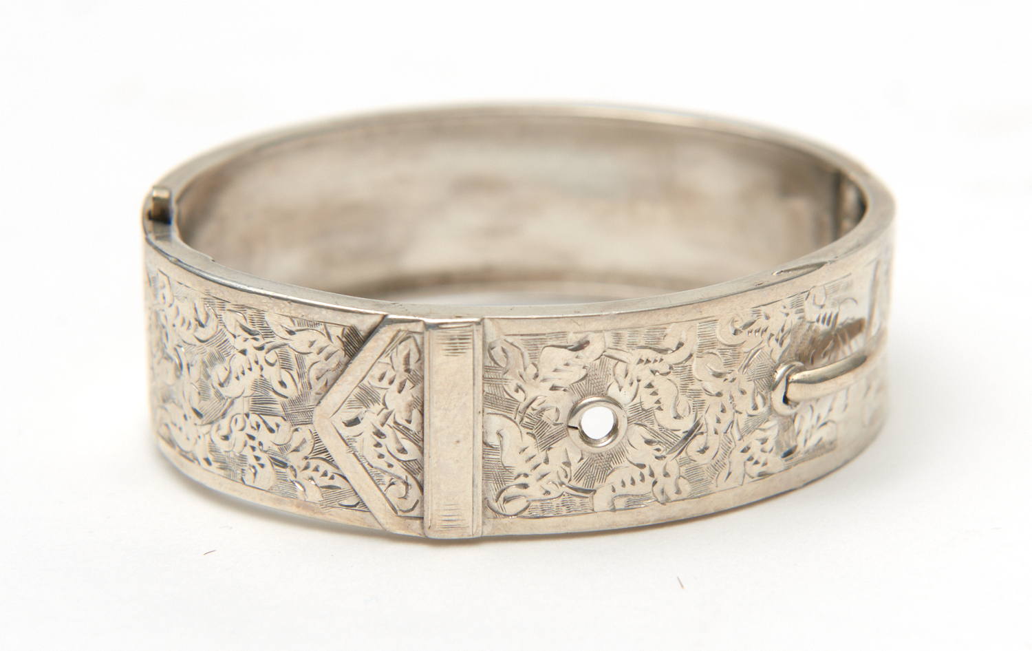 A 19TH CENTURY AUSTRALIAN STERLING SILVER BUCKLE BANGLE HALLMARKED STERLING SILVER