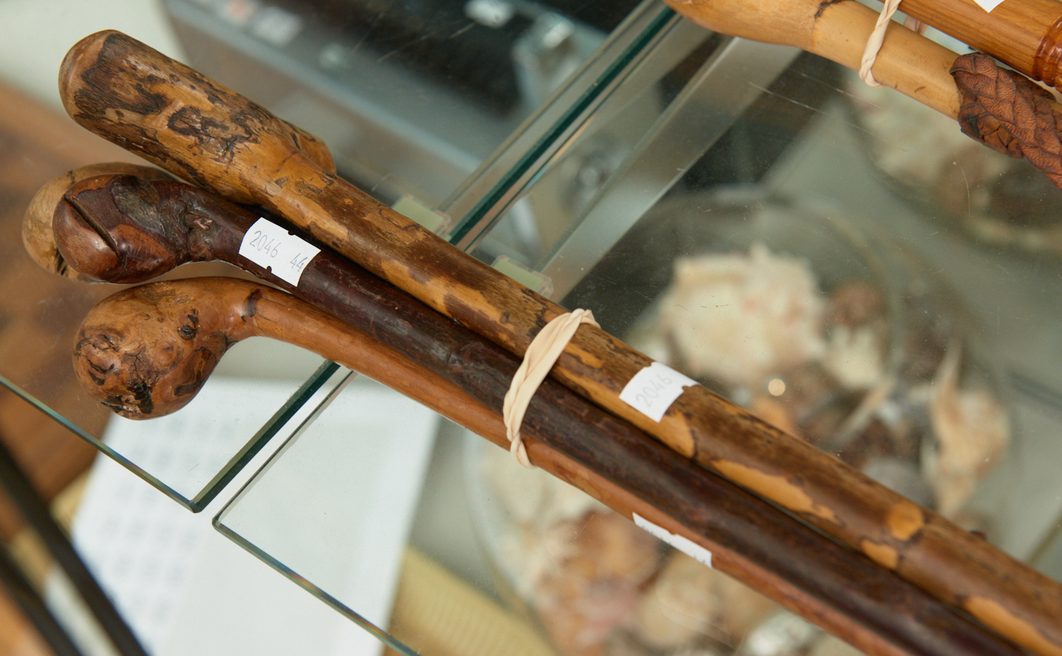 A COLLECTION OF FOUR 19TH CENTURY IRISH WOODEN SHILLELAGH GNARLED WALKING STICKS