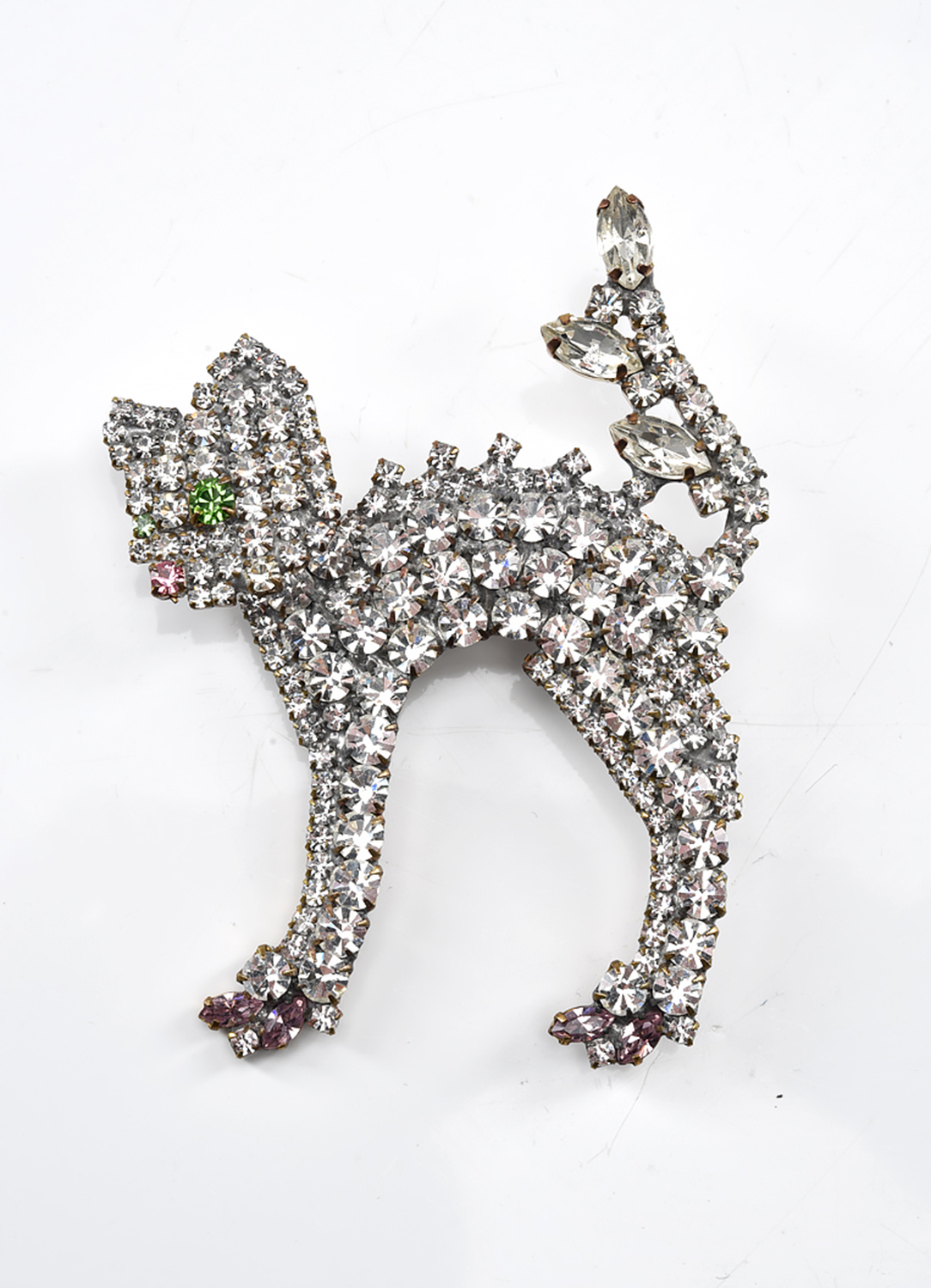 A VINTAGE PASTE SET CAT BROOCH, TOTAL LENGTH 80MM