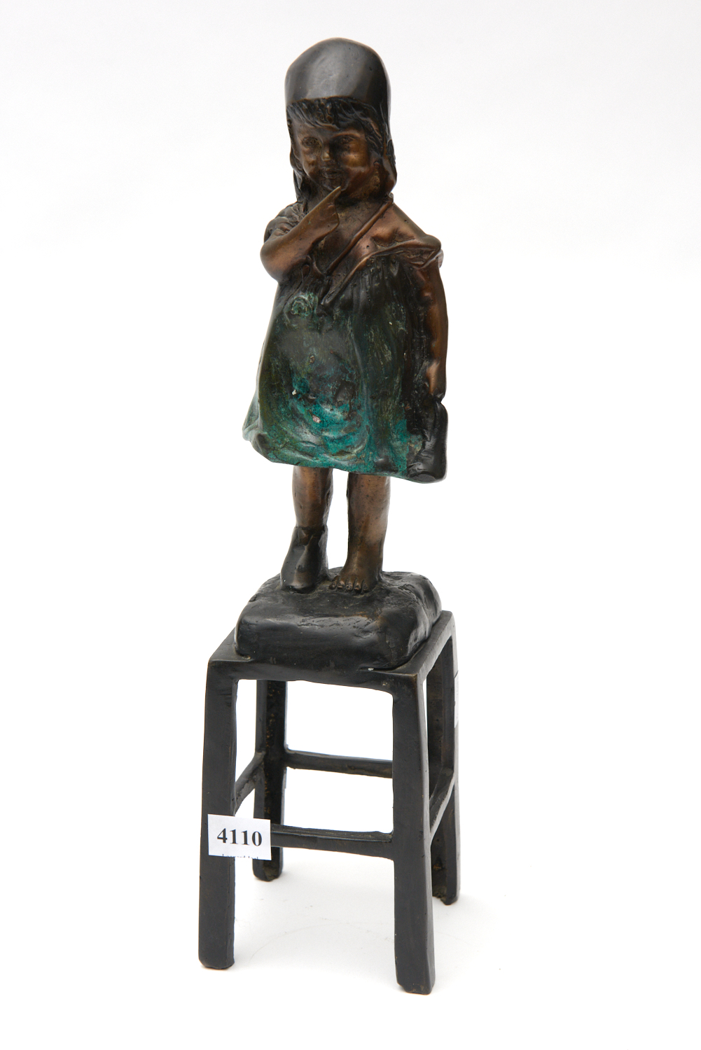BRONZE OF GIRL ON STOOL, REPRODUCTION OF JUAN CLARA, 36 CM H