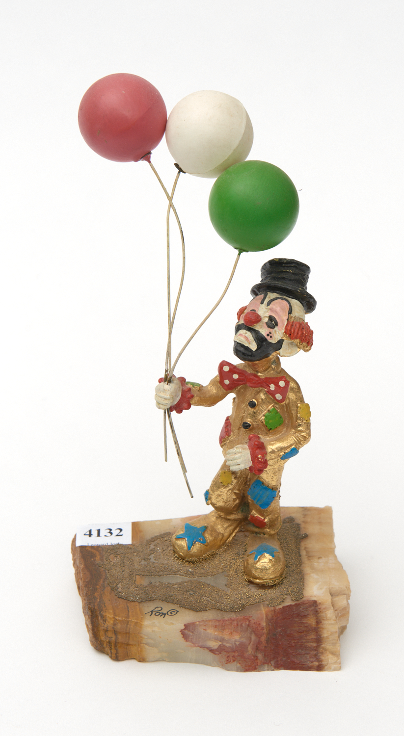 A PAINTED SAD CLOWN FIGURE, SIGNED RON (C)
