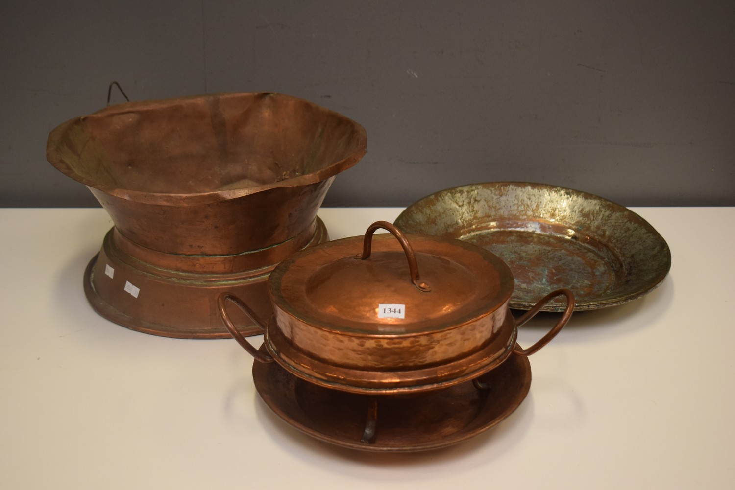 A COLLECTION OF FOUR COPPER ITEMS (LARGEST 19H X 38W CM)