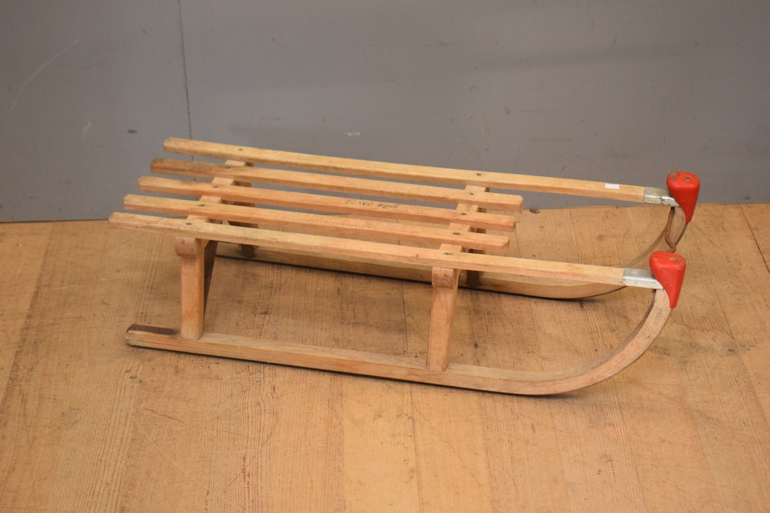 A RETRO TIMBER SLEIGH (23H X 90W X 30D CM)