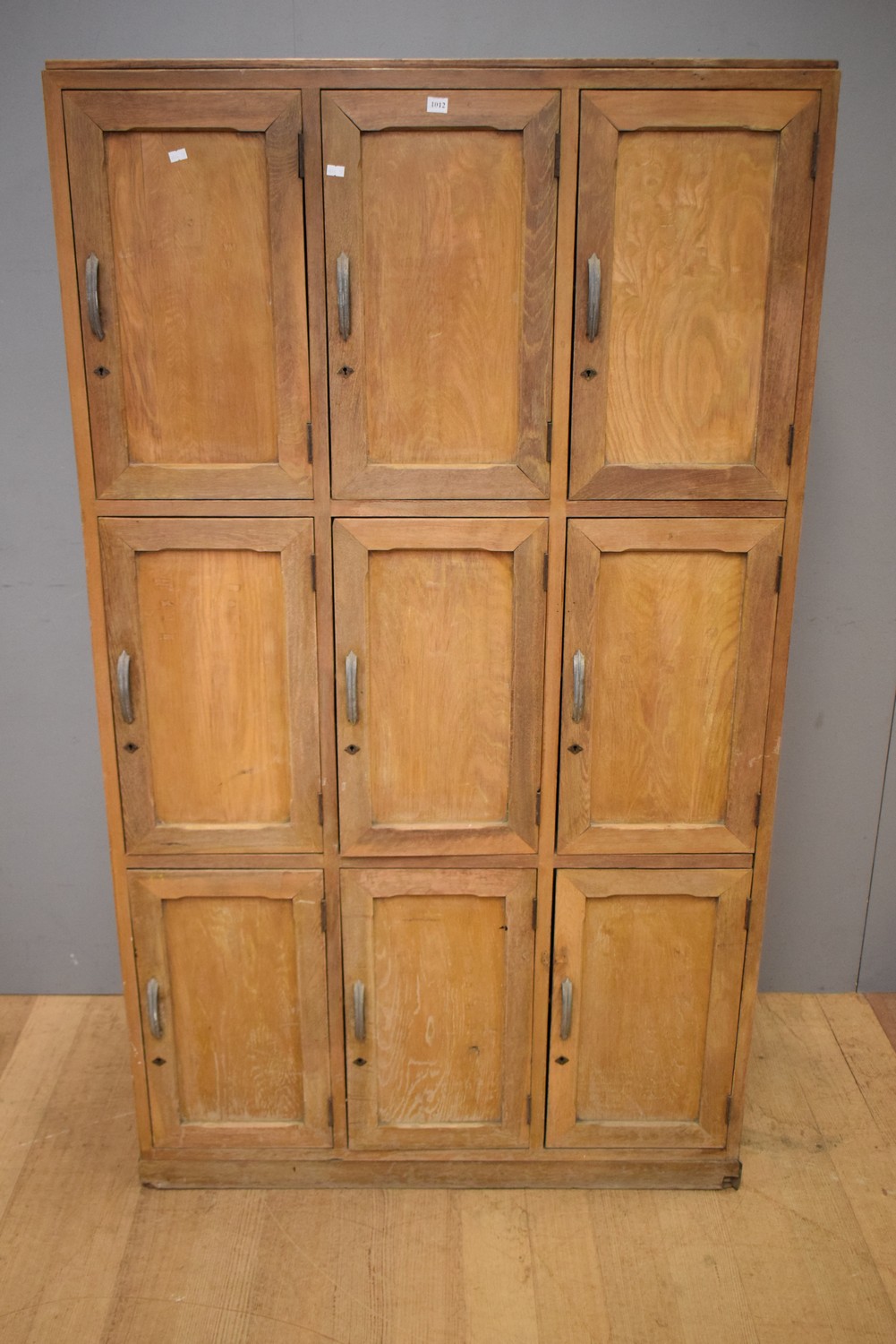 A NINE DOOR SET OF TIMBER LOCKERS (A/F) (173H X 100W X 45D CM)