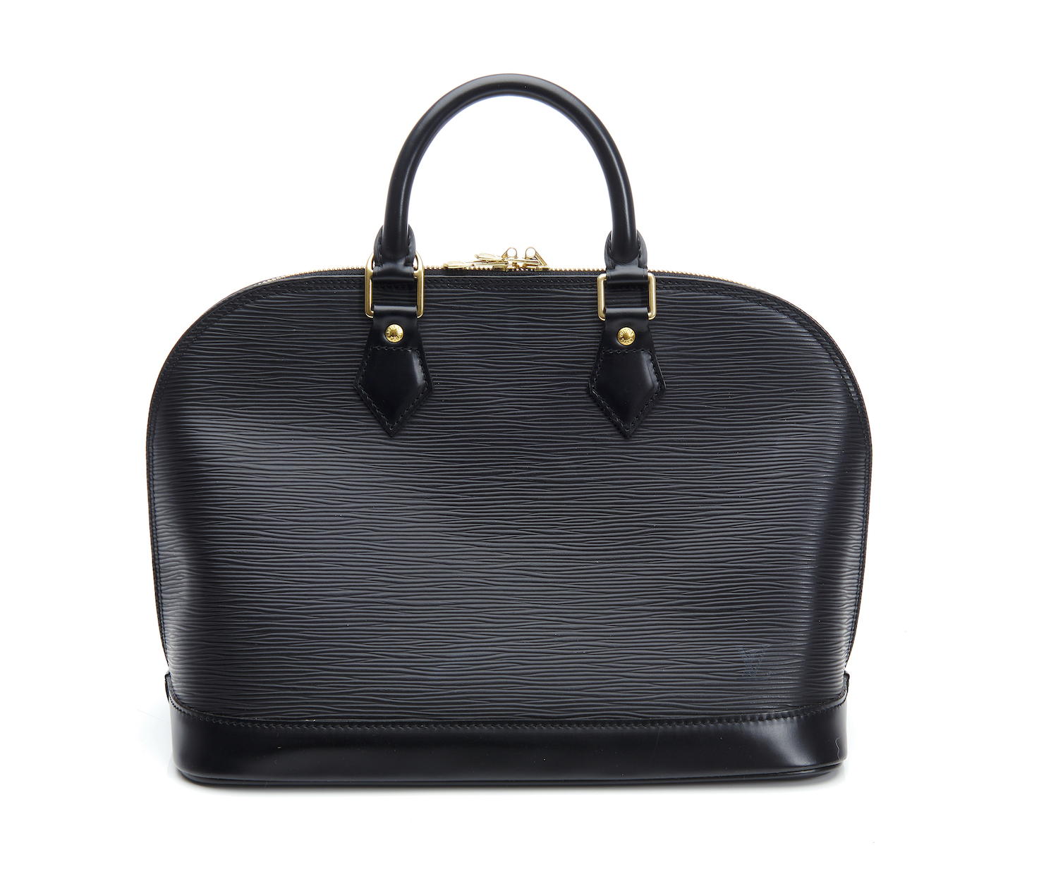 Styled in black Epi calf leather with golden brass hardware, 23 x 30 x 16cm.