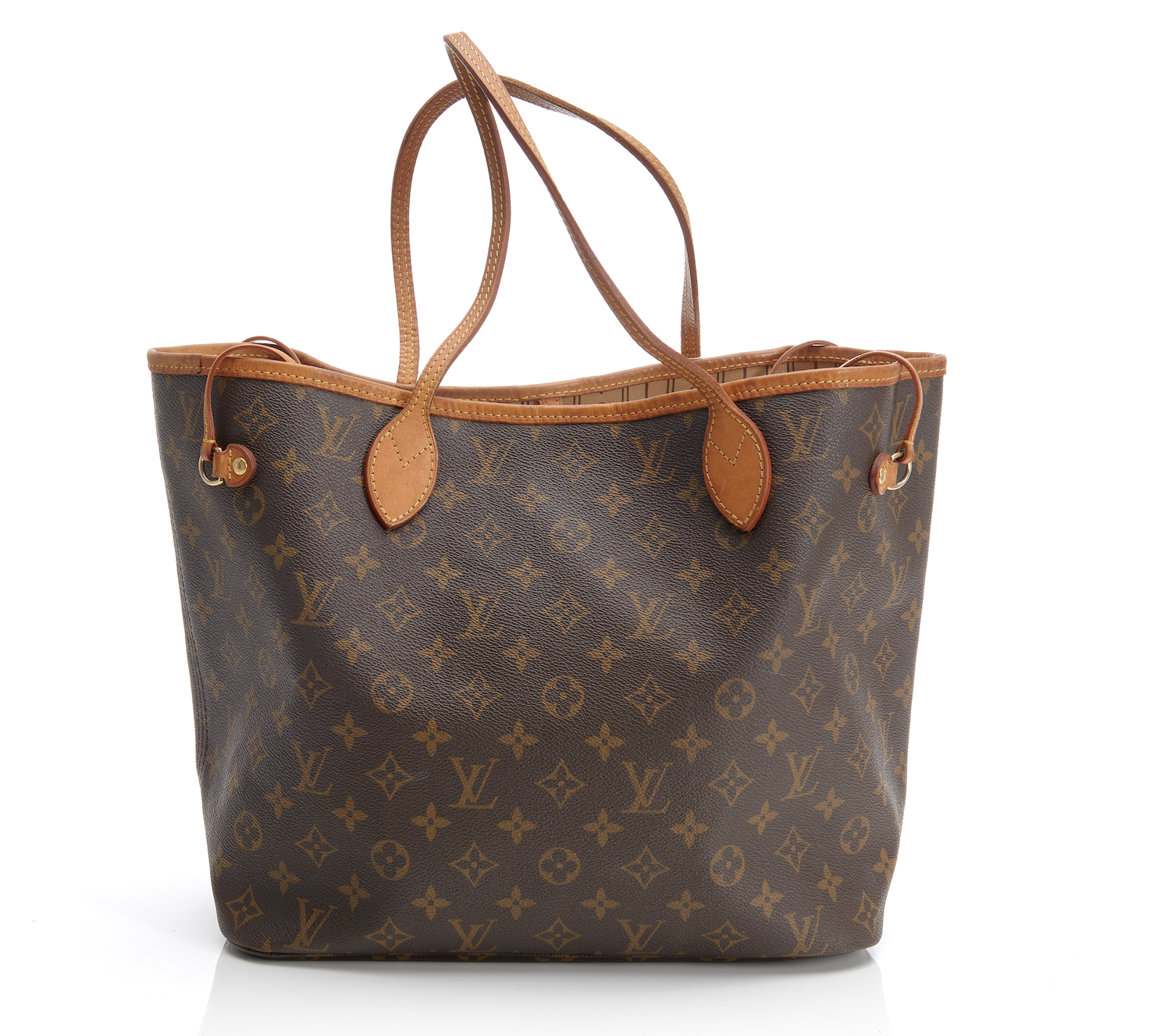Styled in monogram coated canvas with brown leather trim and gold metal hardware, 28 x 32 x 15cm.