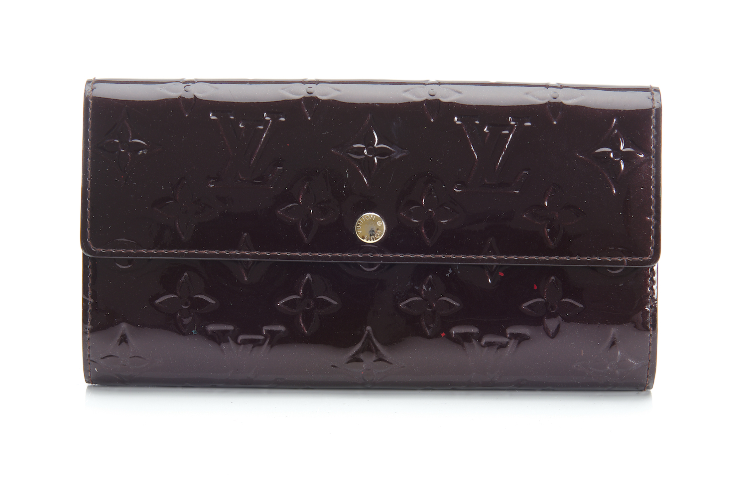 Styled in Amartnte monogram Vernis calf leather with golden brass metal hardware, 19 x 10 x 2cm.