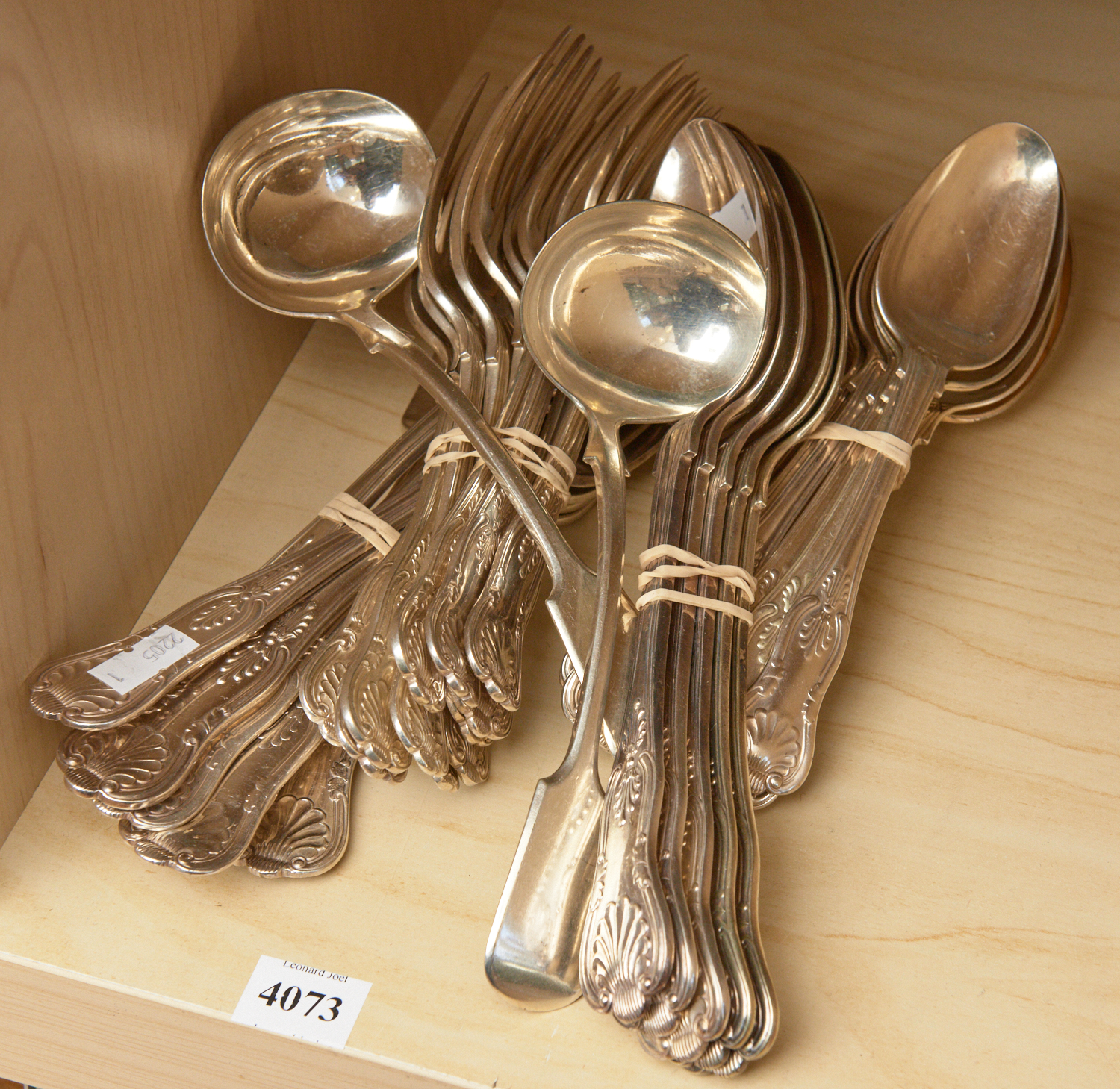 A TIFFANY & CO STERLING SILVER SHELL AND THREAD PATTERN PAT.1905.C) FLATWARE SERVICE FOR SIX, WITH ORIGINAL BOX, SLEEVES AND COPY OF...