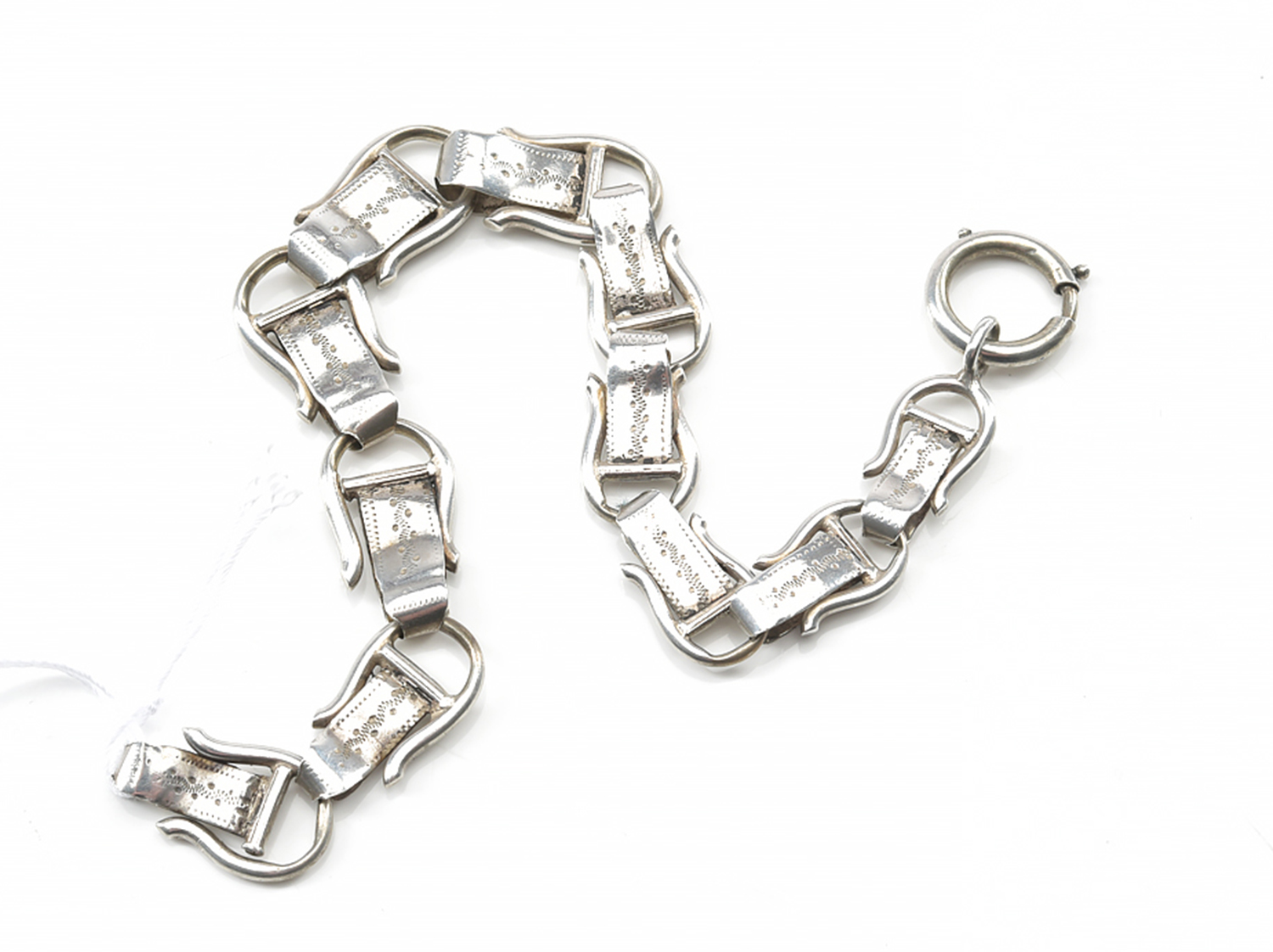 A HORSE BIT LINK BRACELET IN SILVER, CIRCA 1910, TOTAL LENGTH 200MM